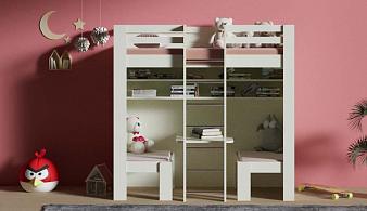 Кровать-чердак со столом и полками Рея-10 BMS