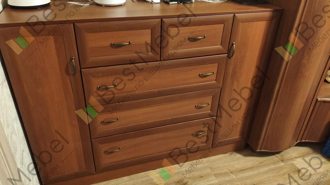 Хороший комод, собирается легко. Ящики выдвигаются плавно, пользуемся 2 месяца, всё устраивает. И по качеству и по дизайну всё ок! Изготовили в срок, как и договаривались, с доставкой тоже не подвели. Вообще фирма нравится, не первый раз заказываем здесь мебель.