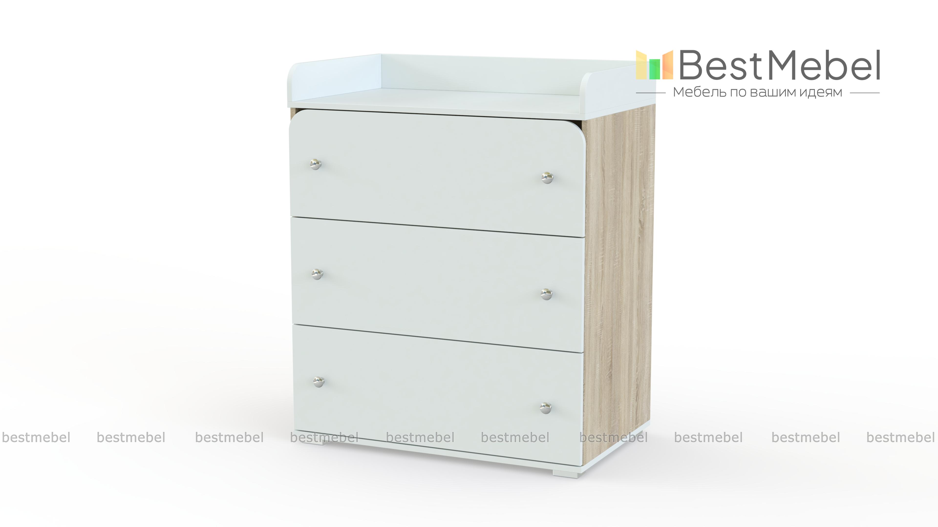 Пеленальный комод Арка 5 BMS – это оригинальный дизайн и широкий выбор цветовых решений, среди которых легко подобрать подходящий вариант. Для удобного переодевания малыша предназначен встроенный пеленальный столик с высокими, безопасно скругленными бортиками. В трех глубоких выдвижных ящиках, один из которых с арочным верхом, легко разместятся необходимые под рукой средства гигиены, пеленки, одежда и игрушки. Купить пеленальный комод Арка 5 BMS вы сможете в нашем интернет-магазине по доступной цене.