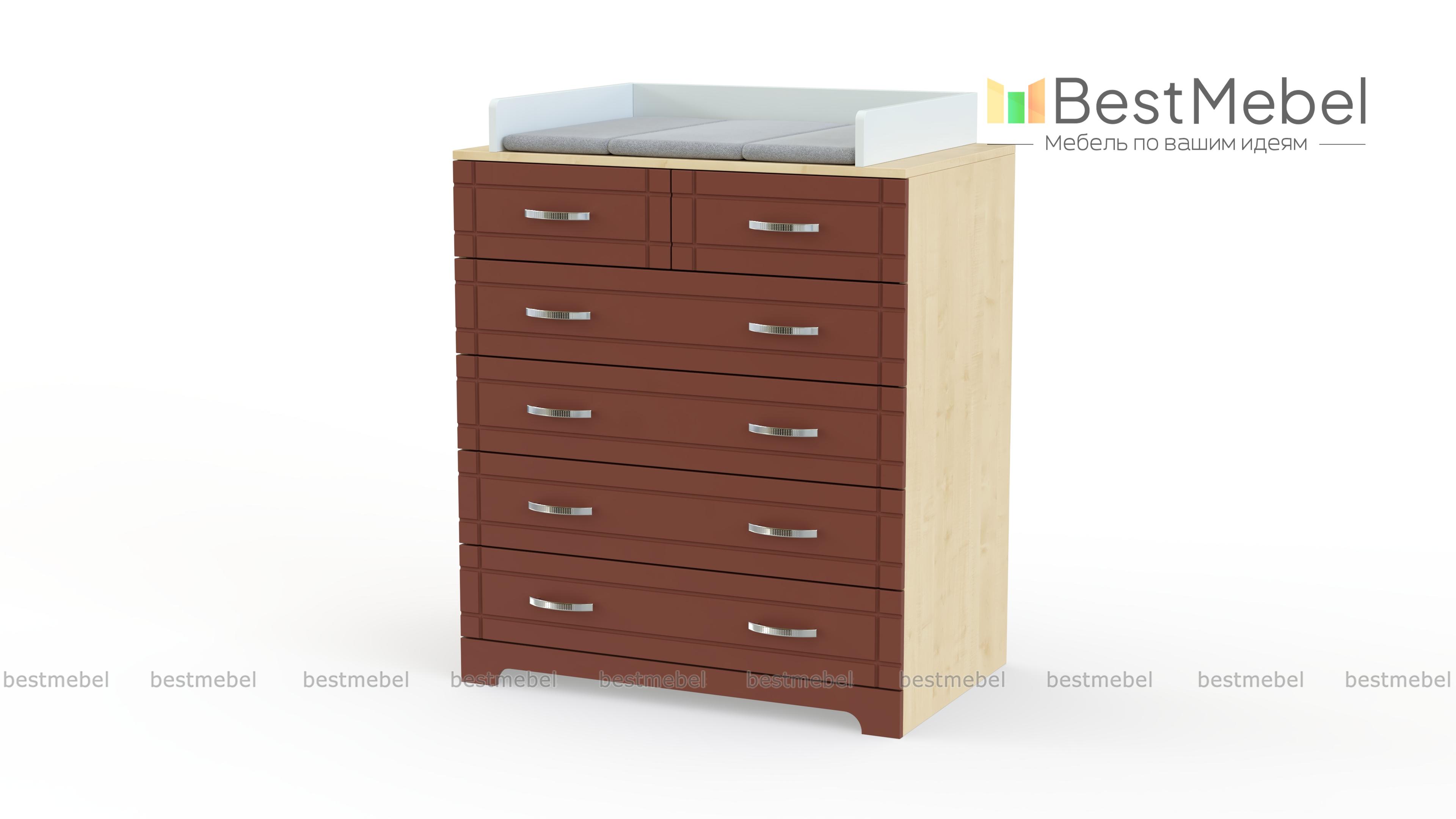 Пеленальный комод Кейт 4 BMS оснащен двумя малыми и четырьмя большими выдвижными ящиками, в которых разместятся как гигиенические средства и прочие мелочи, так и одежда и постельное белье. Пеленальная поверхность ограничена с трех сторон бортиками для защиты малыша от случайного падения и дополнена мягкой накладкой. Износостойкий цветной фасад с фрезеровкой придает глубокому комоду визуальную легкость. Купить пеленальный комод Кейт 4 BMS приглашаем в наш интернет-магазин с выбором цвета по каталогу.
