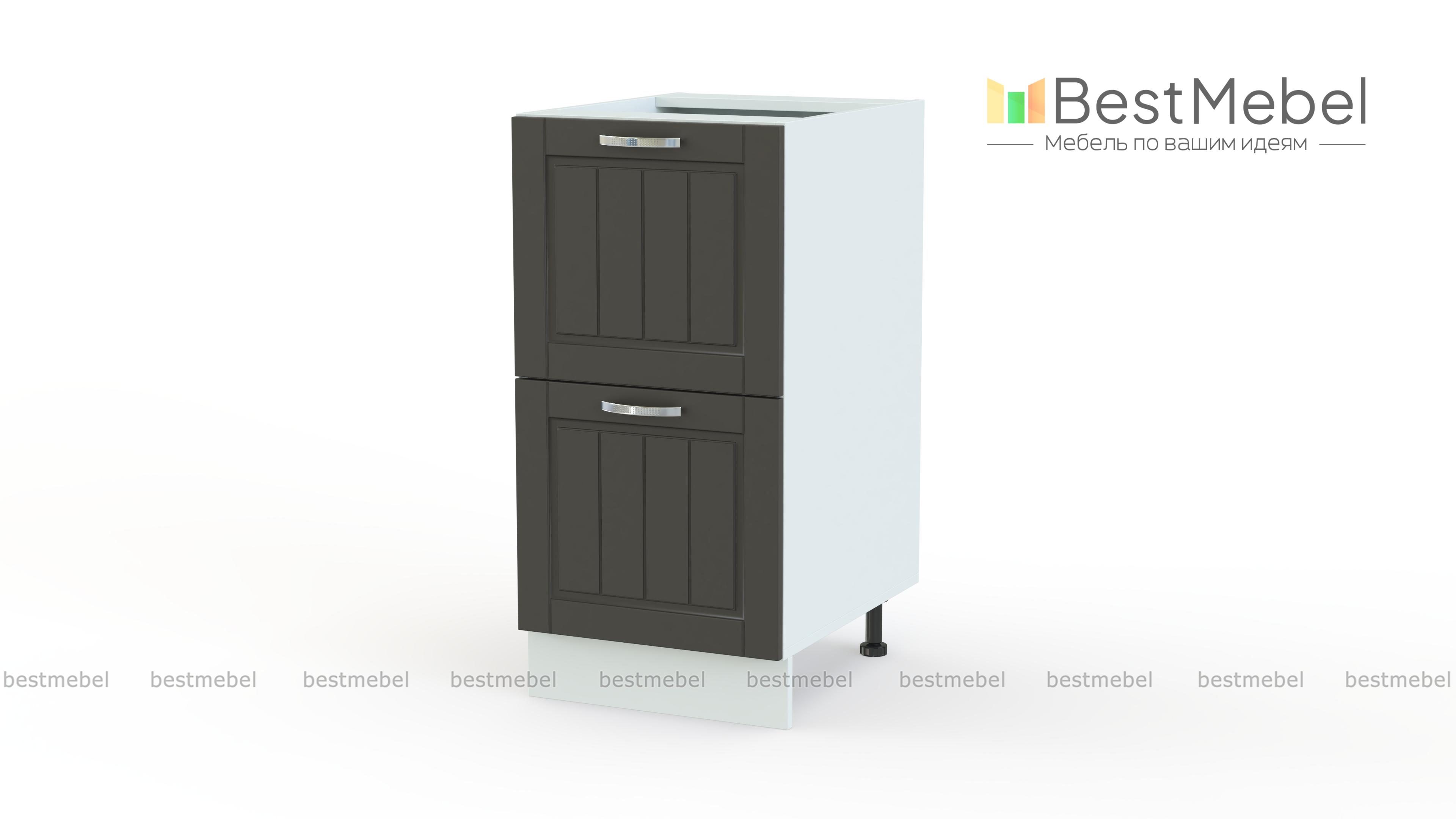 Шкаф нижний Лондон 2 глубоких ящика BMS поможет организовать удобное хранение посуды для готовки и прочих габаритных кухонных принадлежностей. Тумба с украшенными вертикальной фрезеровкой фасадами гармонично дополнит ряд напольных модулей в кухонном гарнитуре из популярной серии в стиле современной классики. Шкаф оборудован двумя глубокими выдвижными ящиками, износостойкой столешницей и регулируемыми опорами, закрытыми цоколем. Купить шкаф нижний Лондон 2 глубоких ящика BMS приглашаем недорого в наш интернет-магазин.