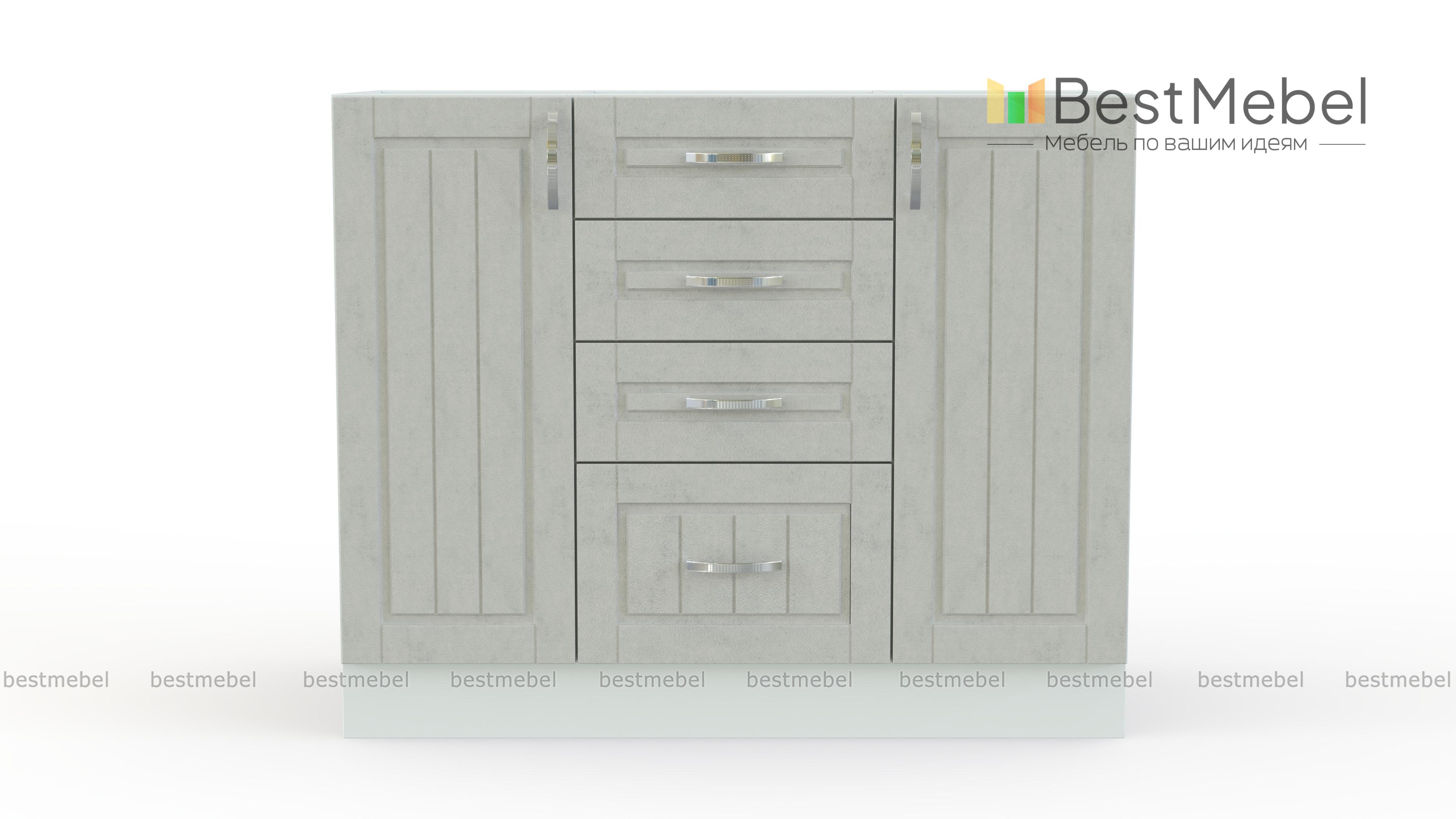 Шкаф нижний Лондон комод BMS отличается крупными габаритами и элегантным дизайном в духе современной классики. Шкаф, выполненный в натуральных светлых оттенках, оборудован двумя распашными отделениями с полками, тремя малыми и одним большим выдвижными ящиками. Продуманная комбинация отделений позволит компактно разместить как необходимые под рукой мелочи, так и посуду или продукты. Купить шкаф нижний Лондон комод BMS приглашаем в наш интернет-магазин.
