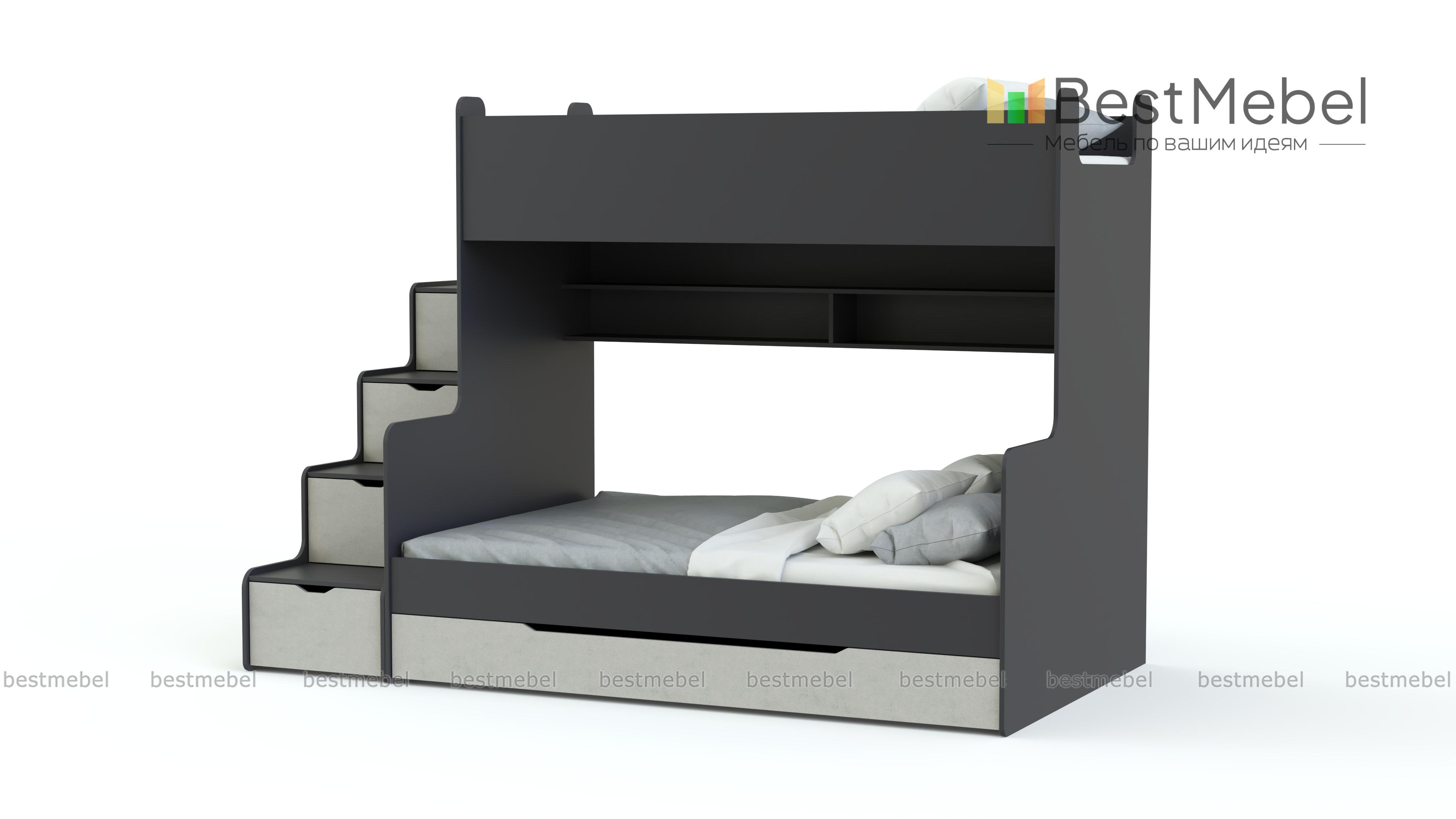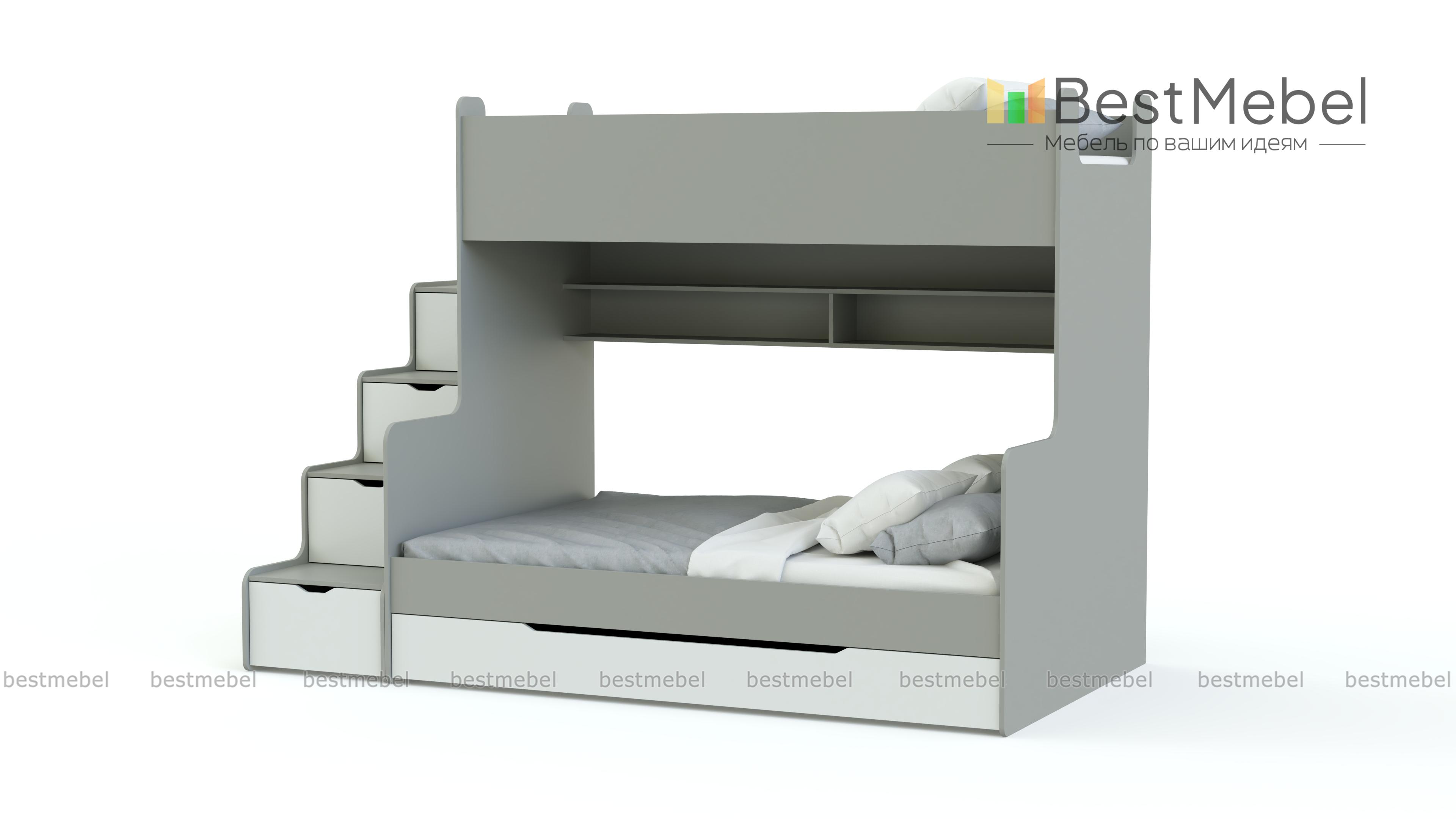 Детская двухъярусная кровать Д-3 BMS подойдет детям и подросткам благодаря простому и функциональному дизайну в современном стиле. Изготовленная из экологичной ламинированной плиты, композиция включает в себя кровать с бельевым ящиком и полкой для книг и приставную лестницу-стеллаж, оснащенную четырьмя ящиками для игрушек или одежды. Все углы кровати безопасно скруглены, а ящики оборудованы удобными для детей вырезными ручками. Купить детскую двухъярусную кровать Д-3 BMS приглашаем в наш интернет-магазин с выбором цвета и размеров.