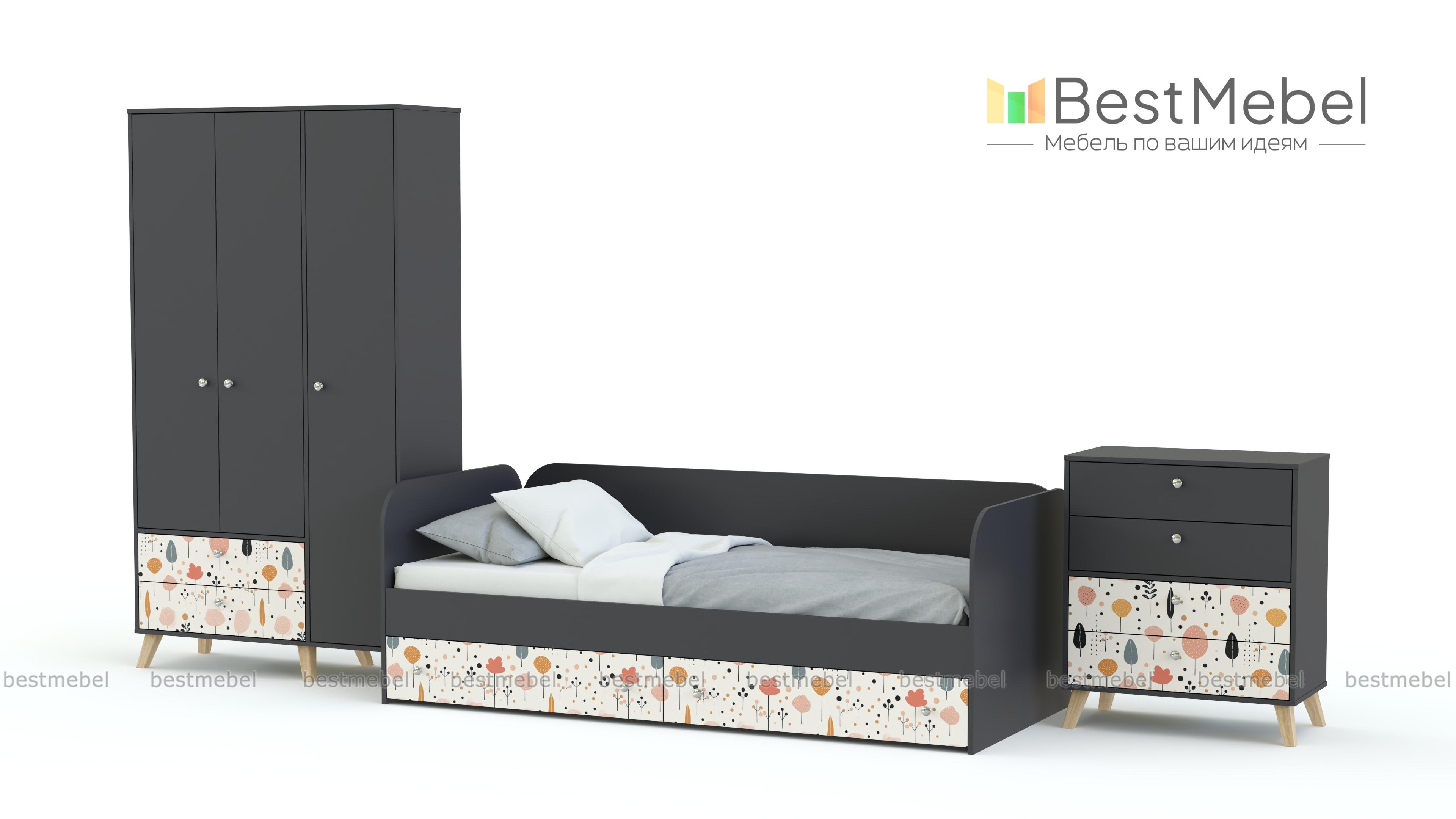 Детская комната Эльза 2 BMS — это комфортное пространство для отдыха и удобная система хранения. Практичная кровать-софа оборудована бельевыми ящиками, а одежда, обувь и разнообразные мелочи разместятся в распашном шкафу с тремя дверцами и комоде. Для оформления комнаты выбрали теплую цветовую гамму, индивидуальности которой придают стильные акценты в виде принта-фотопечати. Купить детскую комнату Эльза 2 BMS вы сможете в нашем интернет-магазине, самостоятельно подобрав размеры, цвет и фурнитуру.