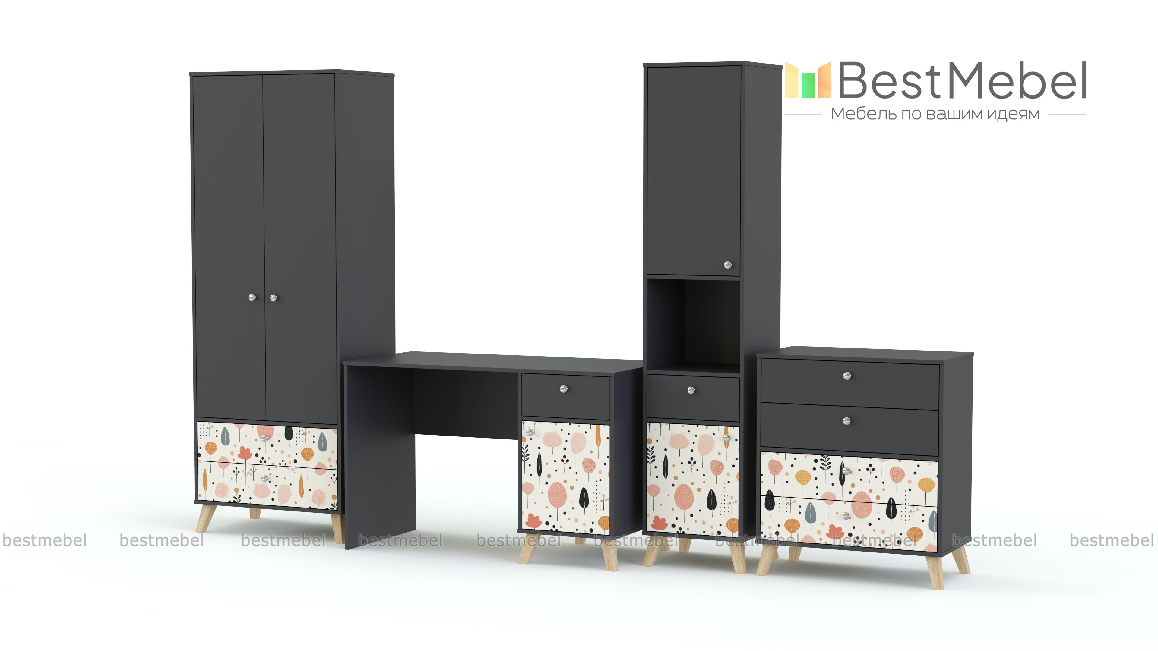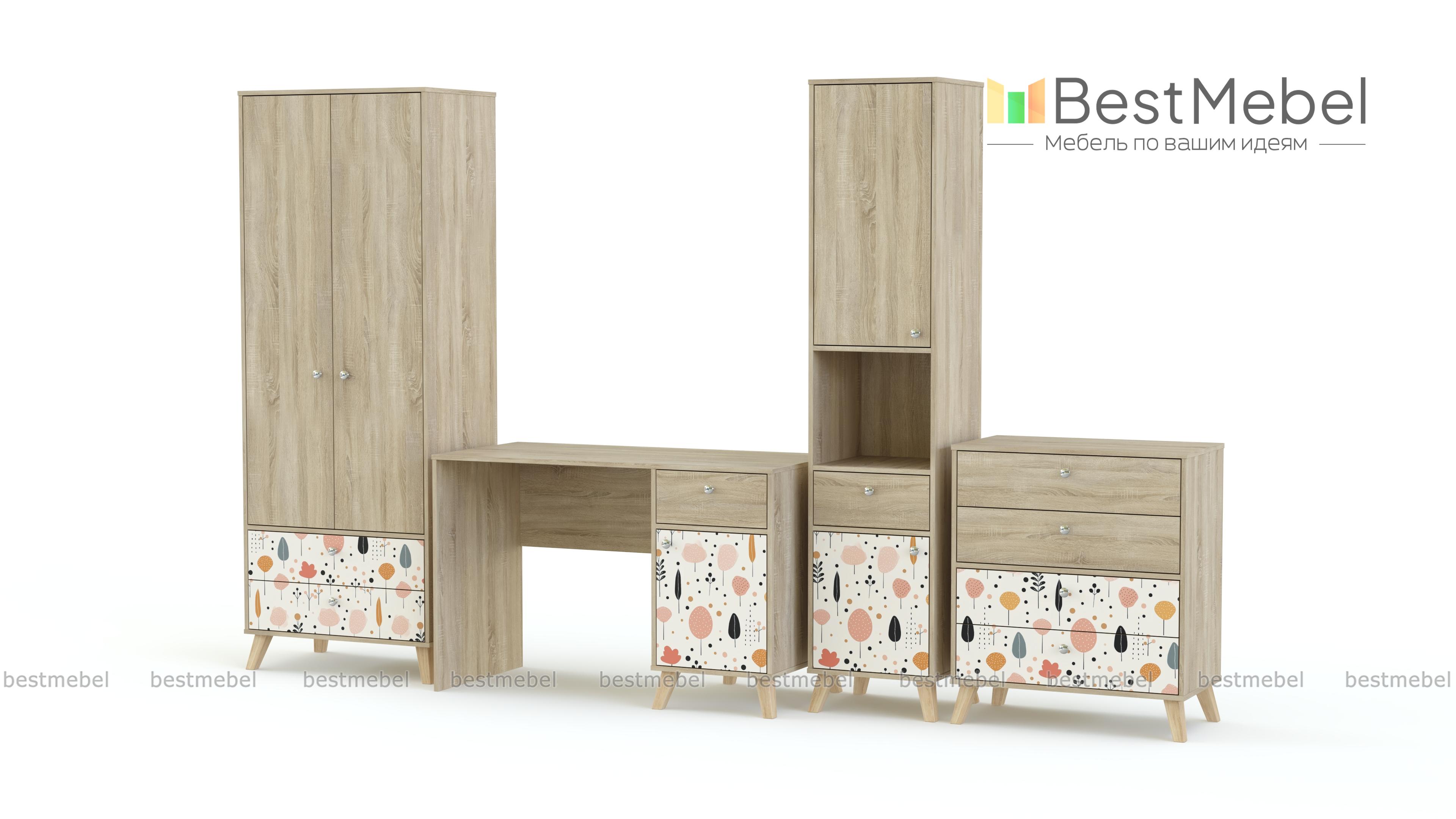 Детская комната Эльза 7 BMS — это визуально легкая современная композиция с рабочей зоной и продуманной системой хранения. Даже в небольшую комнату удачно впишутся письменный столик с тумбой, узкий книжный стеллаж, бельевой комод и двухдверный платяной шкаф. Высокие ножки делают интерьер более «воздушным», а светлая гамма с пастельным декором-фотопечатью создает комфортную атмосферу. Купить детскую комнату Эльза 7 BMS, изготовленную по индивидуальным размерам, вы сможете в нашем интернет-магазине.