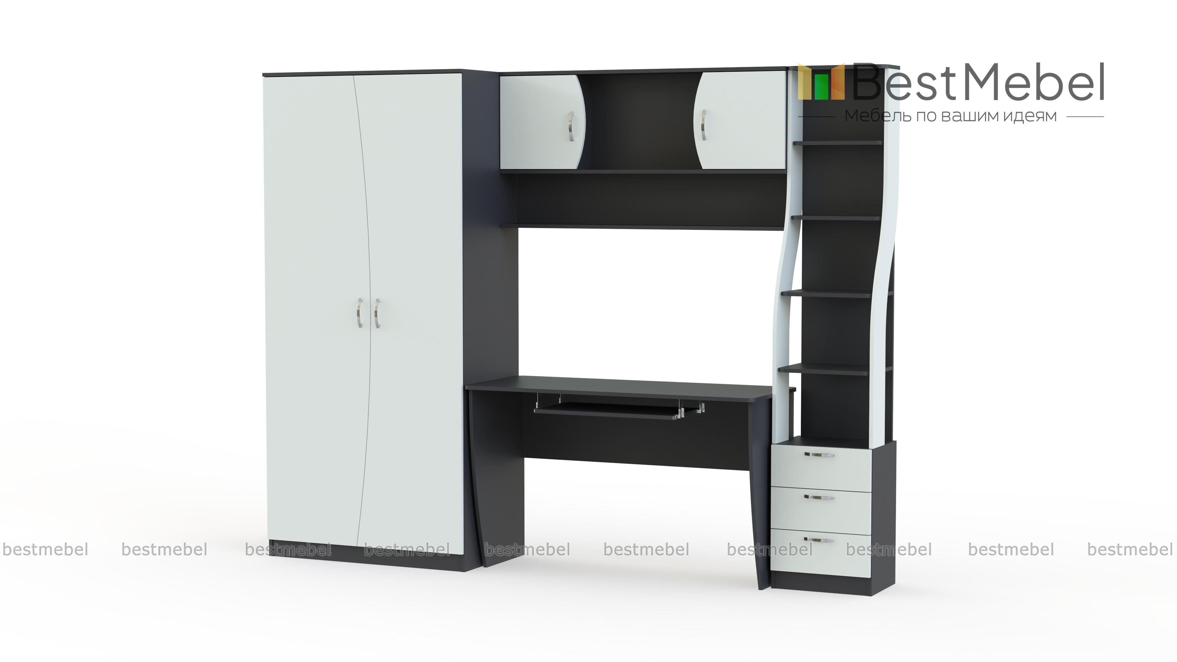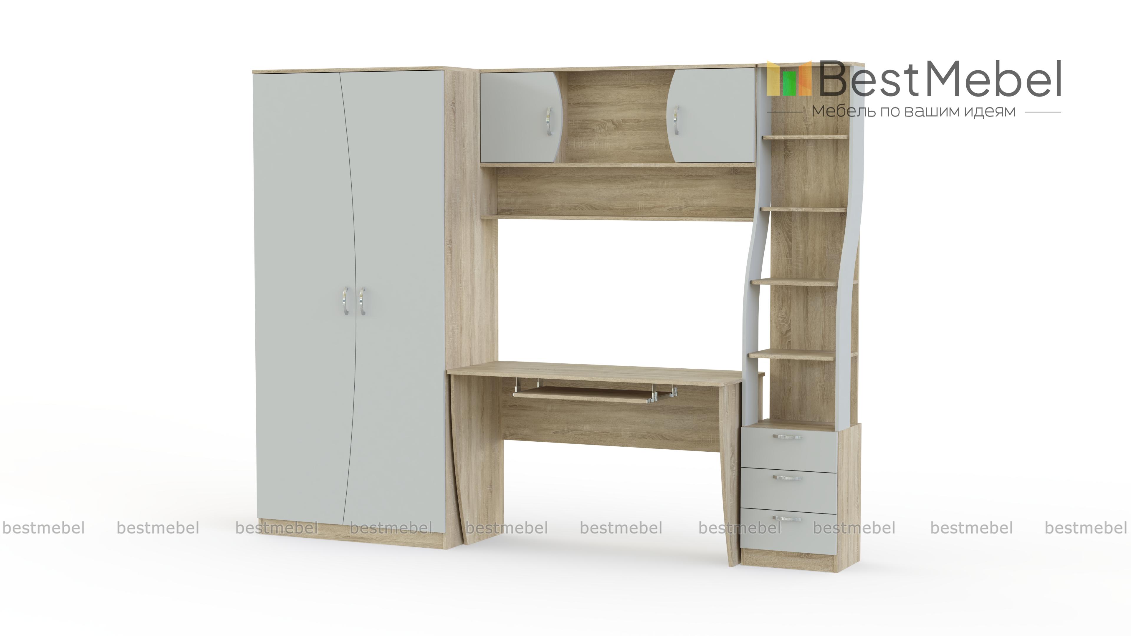 Оригинальный дизайн и функциональность делают детскую стенку Ника № 52 BMS востребованной у родителей школьников. Модель оборудована удобным письменным столом с выдвижной полкой для клавиатуры, узким комбинированным стеллажом для книг и школьных принадлежностей, навесной полкой и вместительным одежным шкафом. Универсальный яркий оттенок фасадов подойдет как комнате мальчиков, так и девочек. В нашем интернет-магазине вы сможете выбрать оптимальные параметры стенки по лучшей цене.