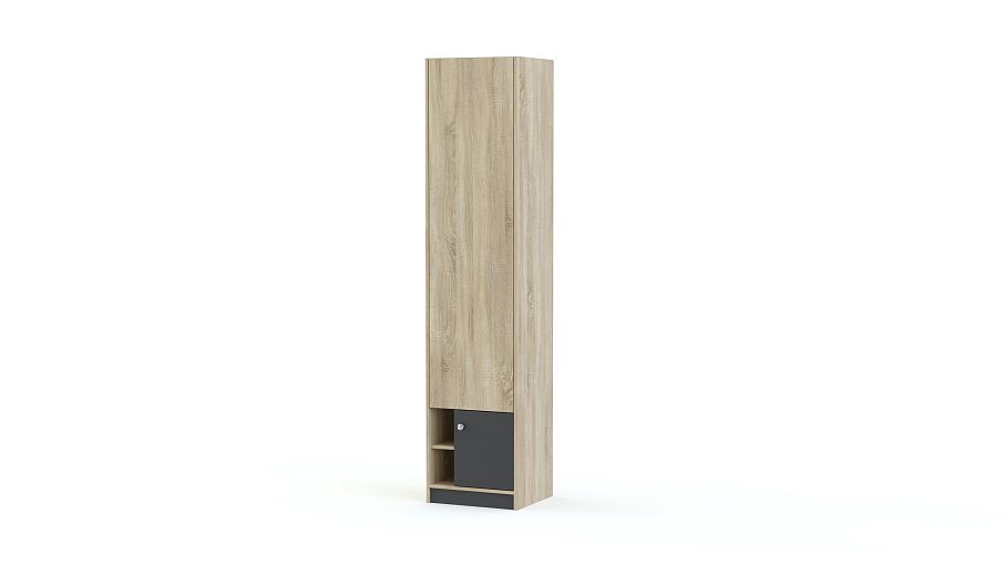 Шкаф Zoom BMS отличается компактными размерами и вместительностью за счет высоты. Лаконичная по форме, модель легко дополнит комплект или станет самостоятельным элементом молодежной комнаты, современной и функциональной. Шкаф оборудован распашным отделением для одежды и секцией с открытыми полочками и глухой дверцей в нижней части. Актуальное цветовое решение – древесные оттенки и насыщенные темные вставки добавят интерьеру контрастности. Купить шкаф Zoom BMS по доступной цене вы сможете в нашем интернет-магазине.