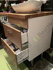 Из-за нестандартных размеров ванной комнаты никак не могли подобрать тумбу в магазинах. И тут нас выручил онлайн магазин БэстМебель. Выбрали тумбу под наши размеры, цвет под столешницу. После оформления заказа позвонил менеджер магазина, уточнил детали заказа, посоветовал как лучше сделать монтаж. Затем на электронную почту прислали эскиз тумбы для утверждения. Доставка была удобная, срок доставки не переносили, заранее позвонили. Тумбу муж собрал сам. Качество отличное! Нам все очень понравилось. Начислили балы на счет. Теперь выбираем кровать.