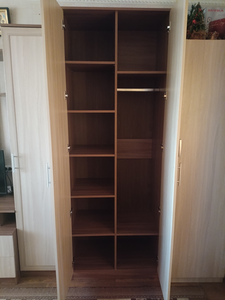 Заказали шкаф по своим размерам . Высота 240 ширина 100 глубина 35 . На сайте можно было выбрать только 37 , но если позвонить оператор может поставить нужную вам глубину, это замечательно, спасибо за это бест мебели. Нам нужен был узенький шкаф за дверь. В целом шкафом довольны , появилось дополнительное место для хранения.
