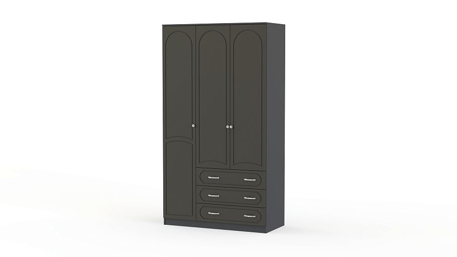 Шкаф Поларис 3.3 BMS объединил функции гардероба и комода для рациональной организации пространства. Платяное отделение дополняет секция с полками, а также три широких выдвижных ящика для хранения постельного белья и мелкого трикотажа. Выразительный дизайн в неоклассическом стиле создают оригинальная арочная фрезеровка фасада и темная палитра. Купить шкаф Поларис 3.3 BMS для меблировки прихожих и спален вы сможете на сайте нашего интернет-магазина.