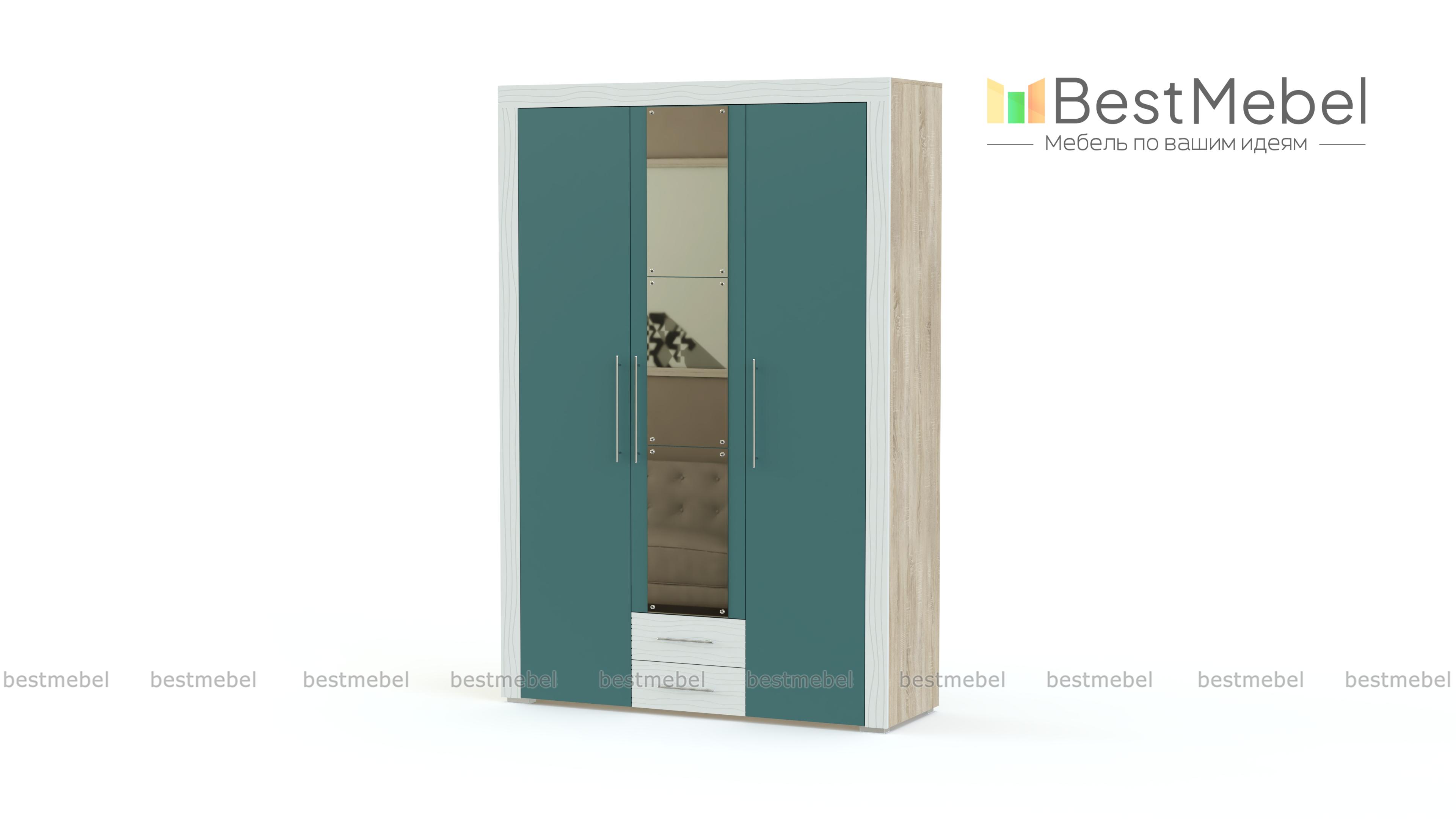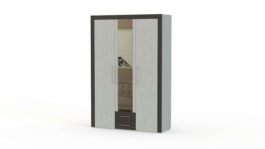 Шкаф распашной Азалия 4-4805 BMS отличается гармоничными пропорциями и нейтральной расцветкой в актуальной серо-графитовой гамме. Фасады с текстурой камня декорированы рельефными накладками и большим зеркалом, разделенным на три элемента. За распашными дверцами располагаются антресольные полки, отделение со штангой и секция с полками. Мелкие вещи смогут разместить в выдвижных ящиках. Купить шкаф распашной Азалия 4-4805 BMS по демократичной цене вы сможете в нашем интернет-магазине.