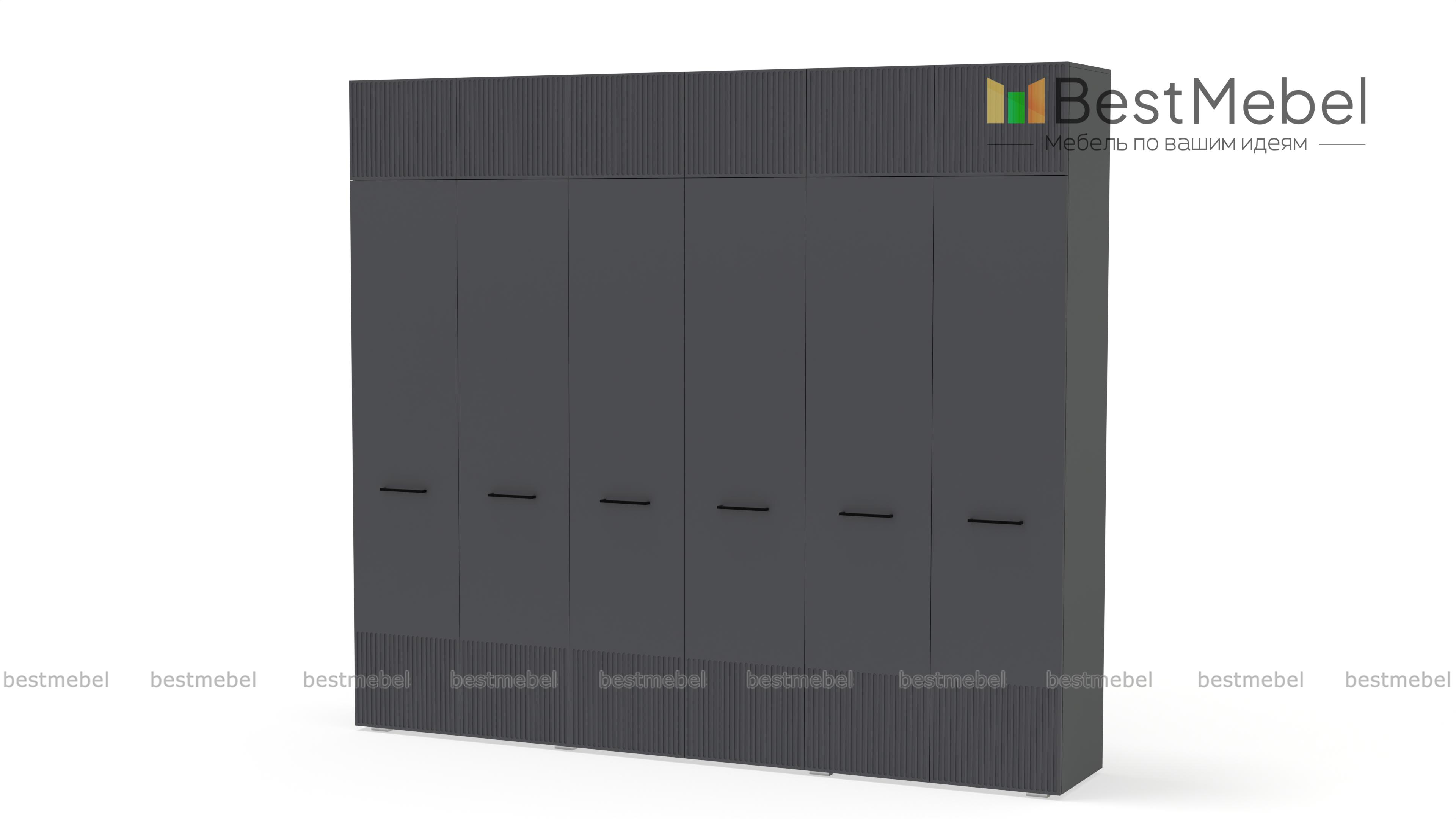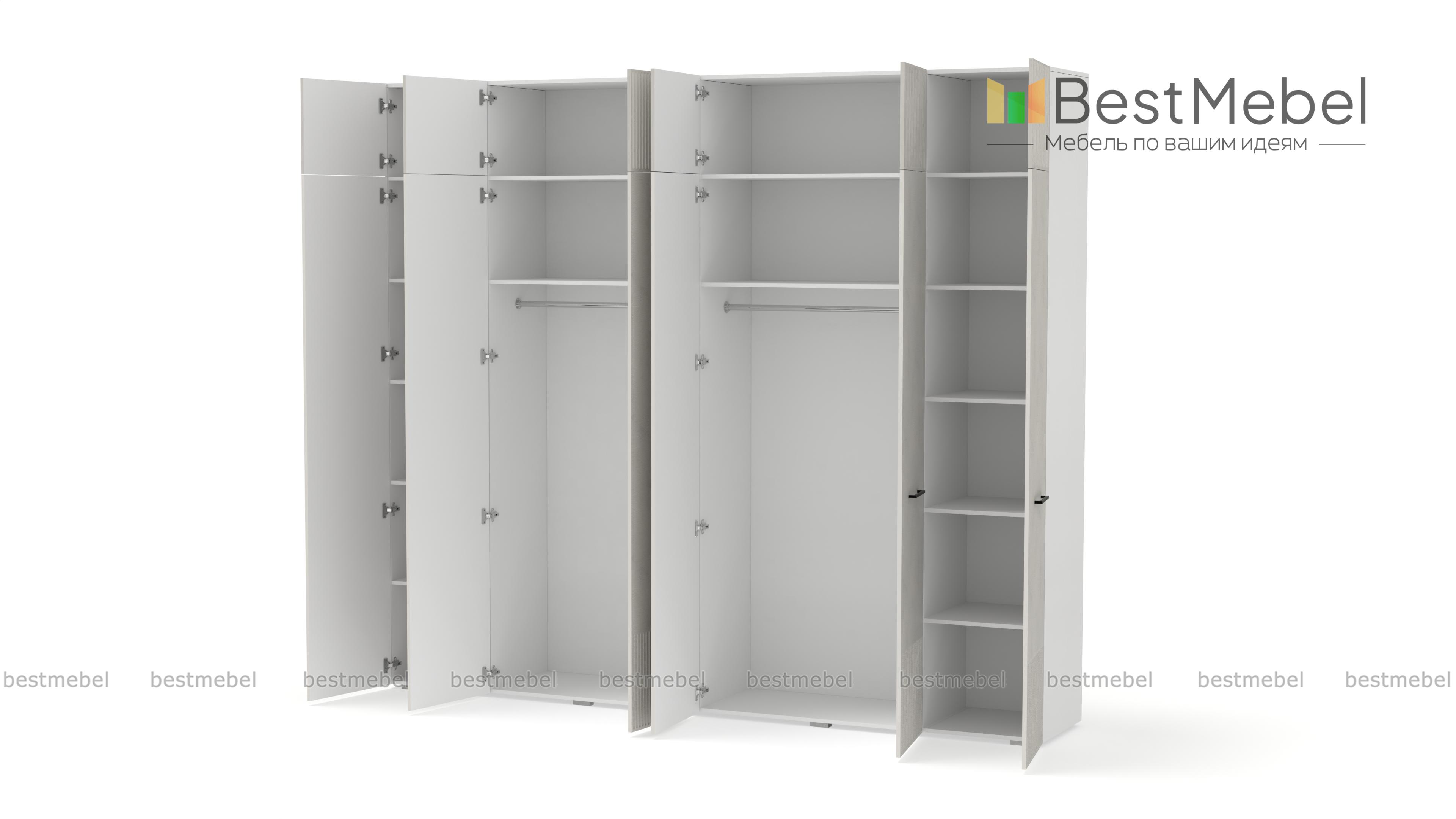 Шкаф распашной Декарт 12 BMS — это вместительный современный гардероб с антресолью. В двух секциях с перекладинами и двух бельевых отделениях можно хранить одежду на вешалках и сложенные вещи, а то, что вы редко используете, убрать на верхние полки. Светлый, рифленый по низу и верху фасад шкафа оснащен стильными поперечными ручками. Купить шкаф распашной Декарт 12 BMS вы сможете на сайте нашего интернет-магазина с изготовлением по индивидуальным размерам.