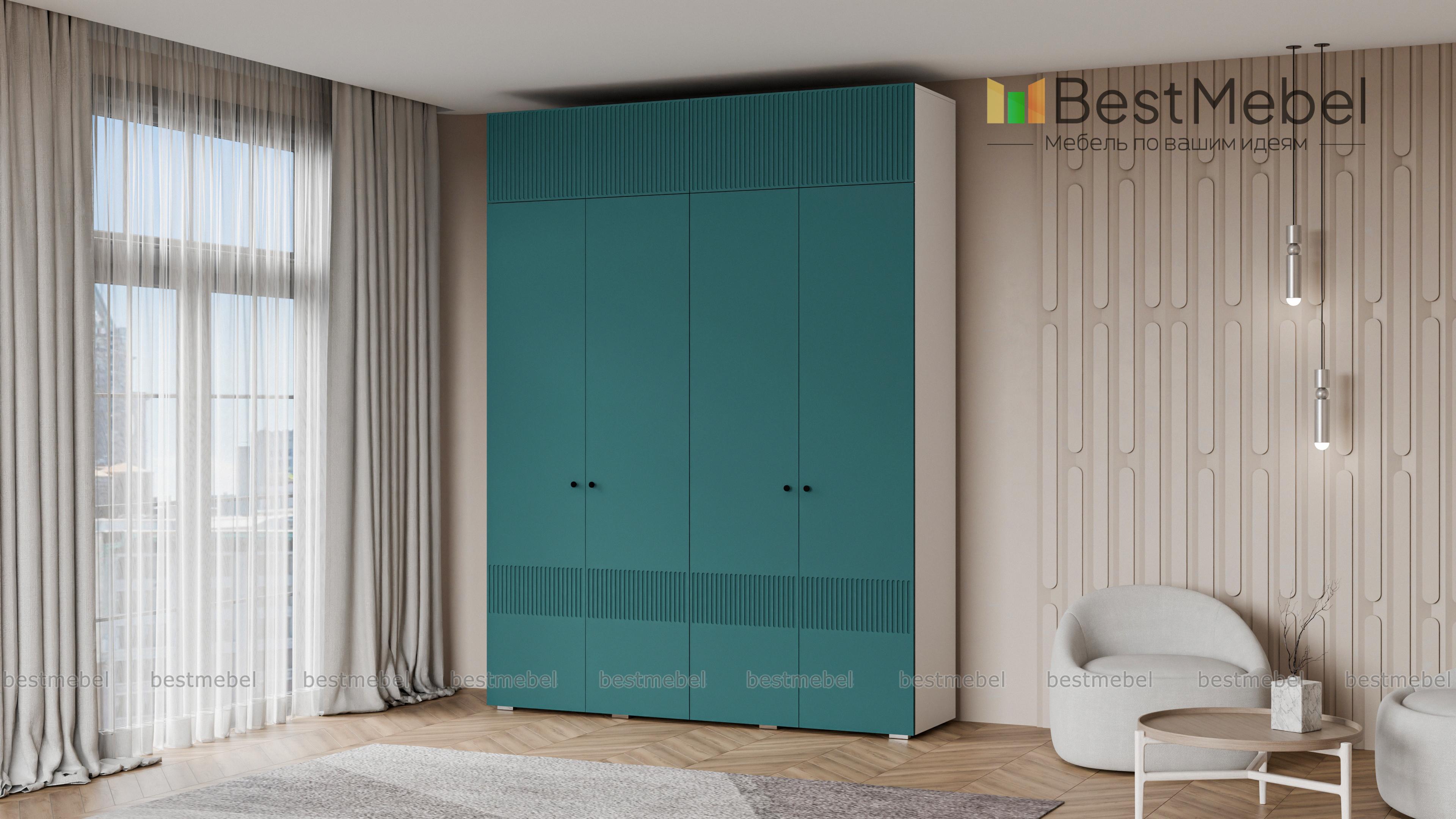 Шкаф распашной Джосс 10 BMS с четырьмя дверцами и антресолью можно разместить в разных комнатах: небольших спальнях, прихожих и детских. Оригинальные оттенки корпуса и фасада создают комфортную атмосферу в помещении, стильный акцент в отделке — фрезерованный орнамент. За дверцами справа скрыты штанга и полка, а слева — узкая платяная секция и бельевой стеллаж. Купить шкаф распашной Джосс 10 BMS с выбором размеров, цвета и фурнитуры вы сможете недорого в нашем интернет-магазине.