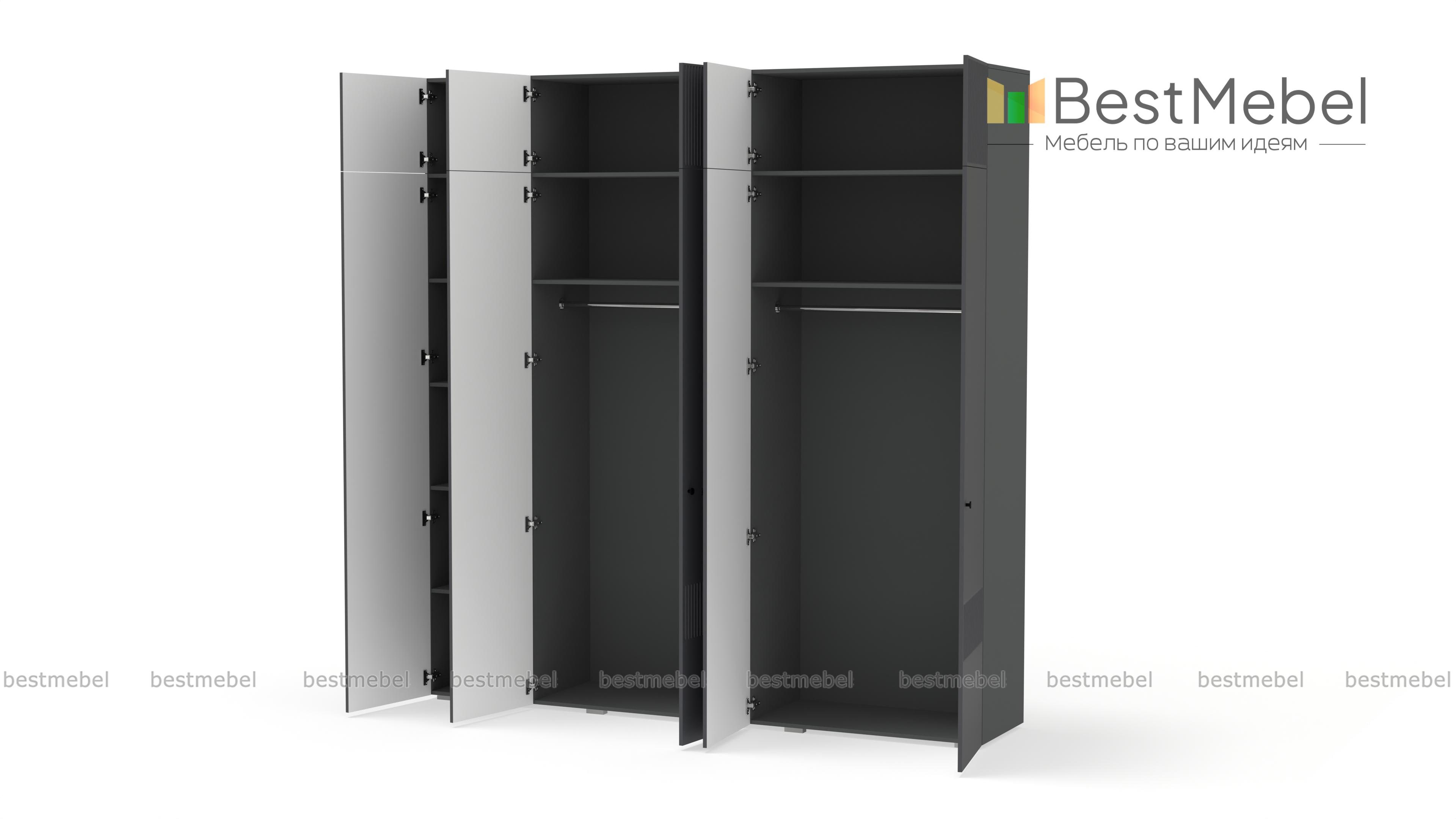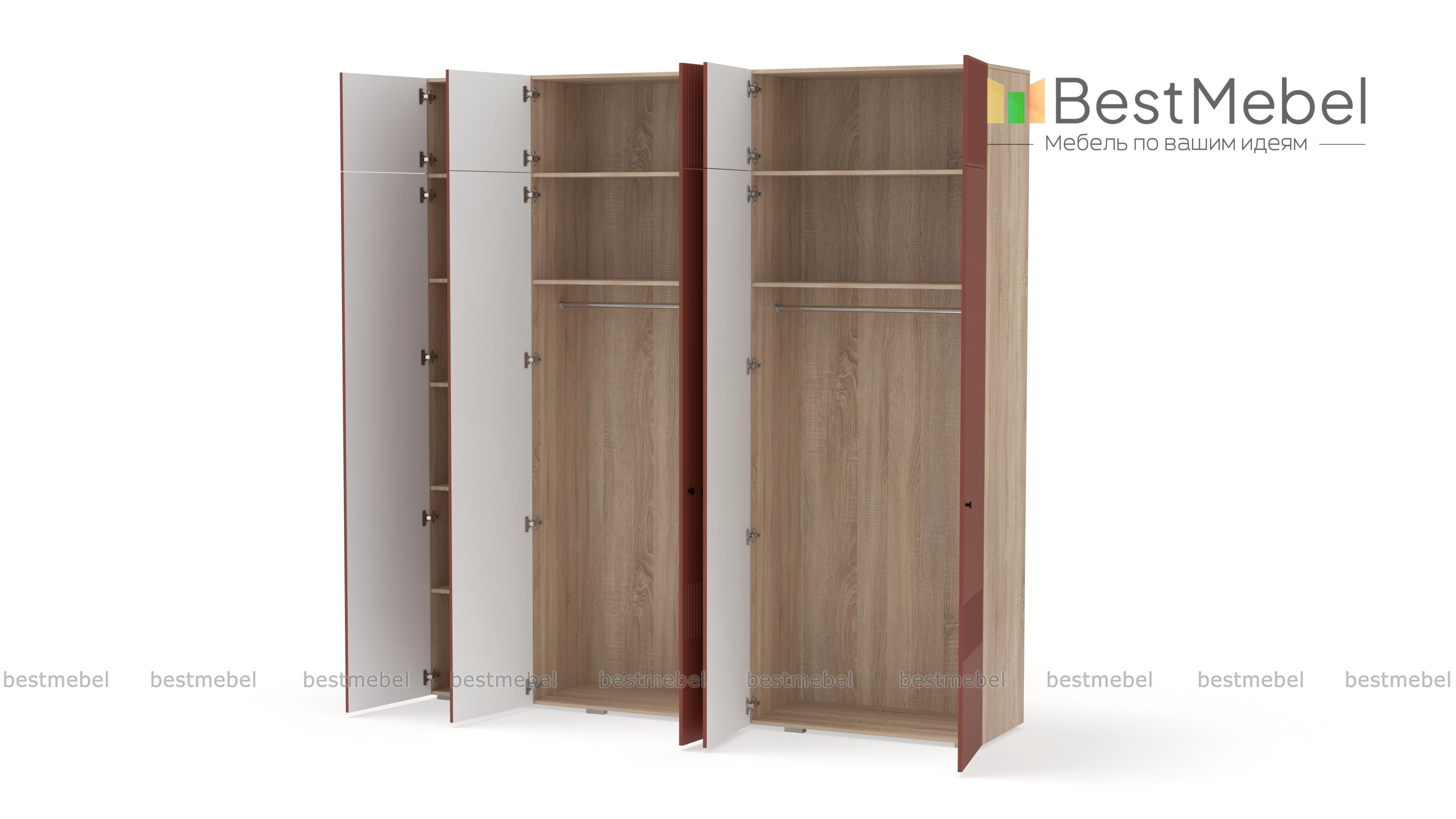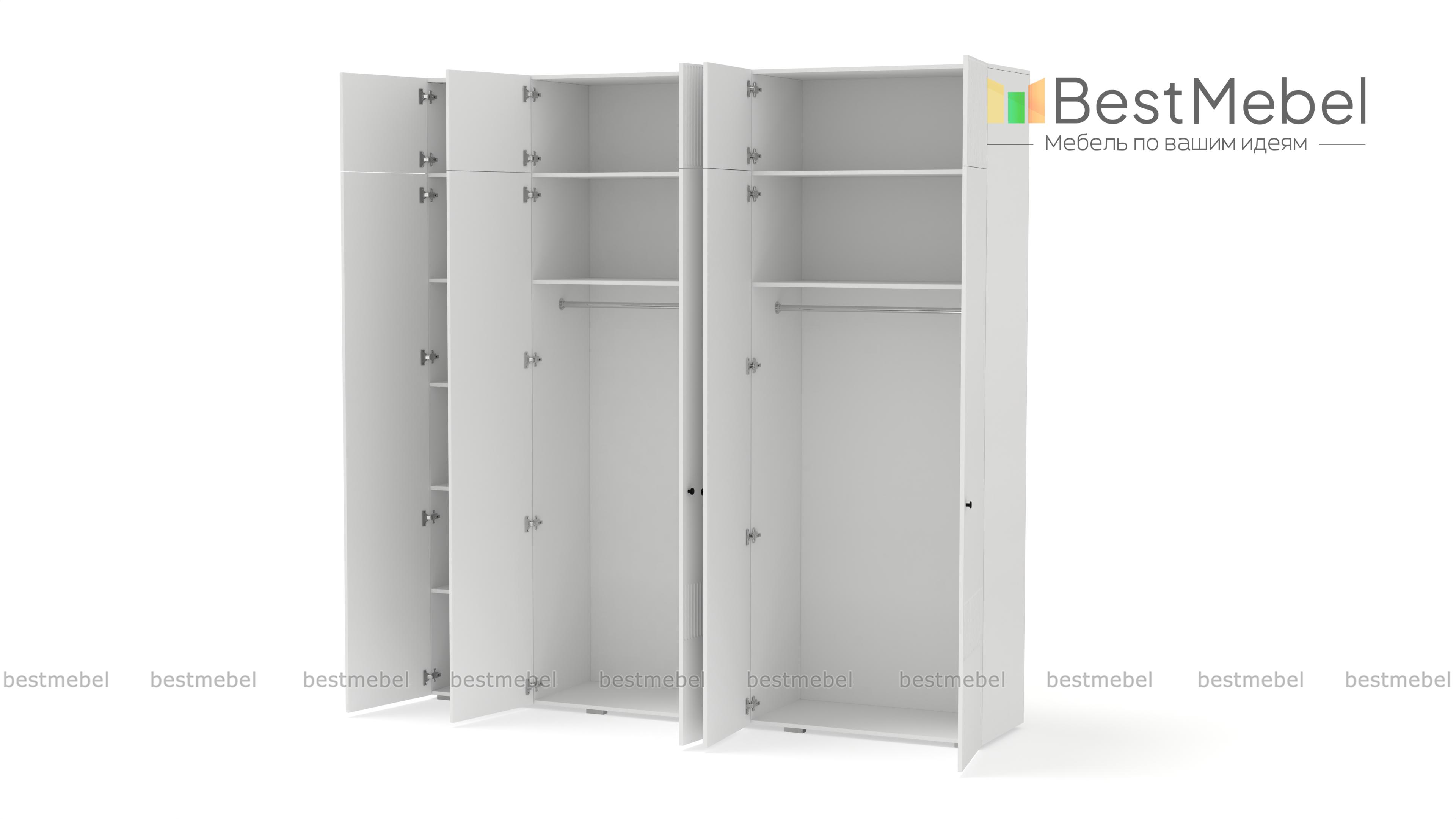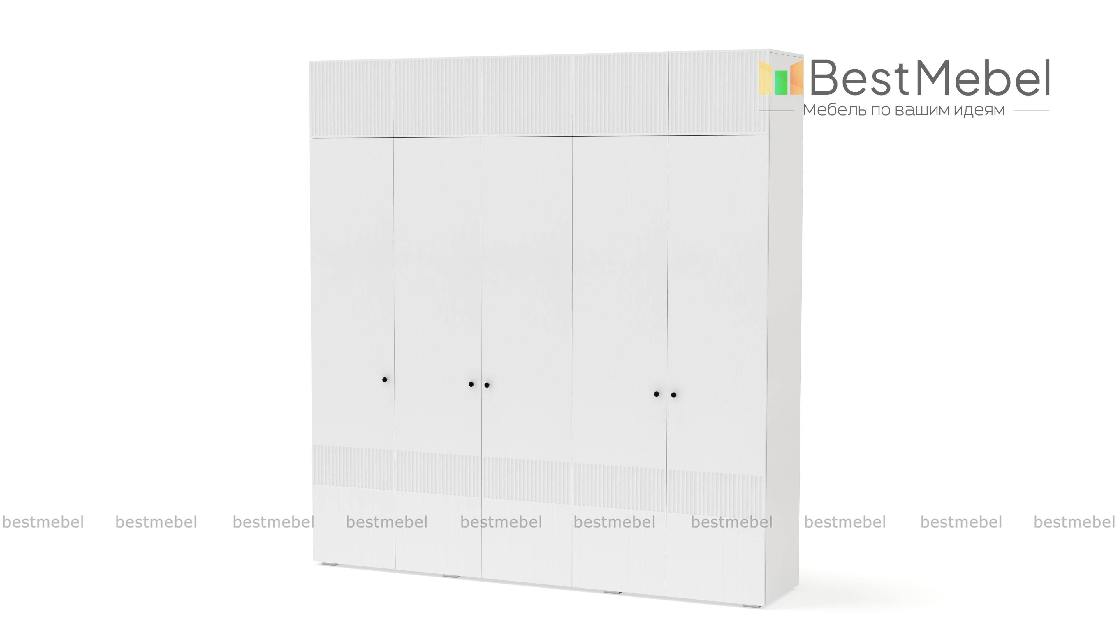 Шкаф распашной Джосс 11 BMS с антресолью — практичное и эстетическое решение для вашего дома. Пространство будет занято до потолка — значит, появится больше места для хранения как повседневного, так и сезонного гардероба. Внутри пятидверного шкафа располагаются две штанги и ряд бельевых полок, а сплошной фасад яркого аквамаринового цвета декорирован стильным рельефом. Купить шкаф распашной Джосс 11 BMS вы сможете на сайте нашего интернет-магазина в необходимом размере и любых оттенках из каталога.