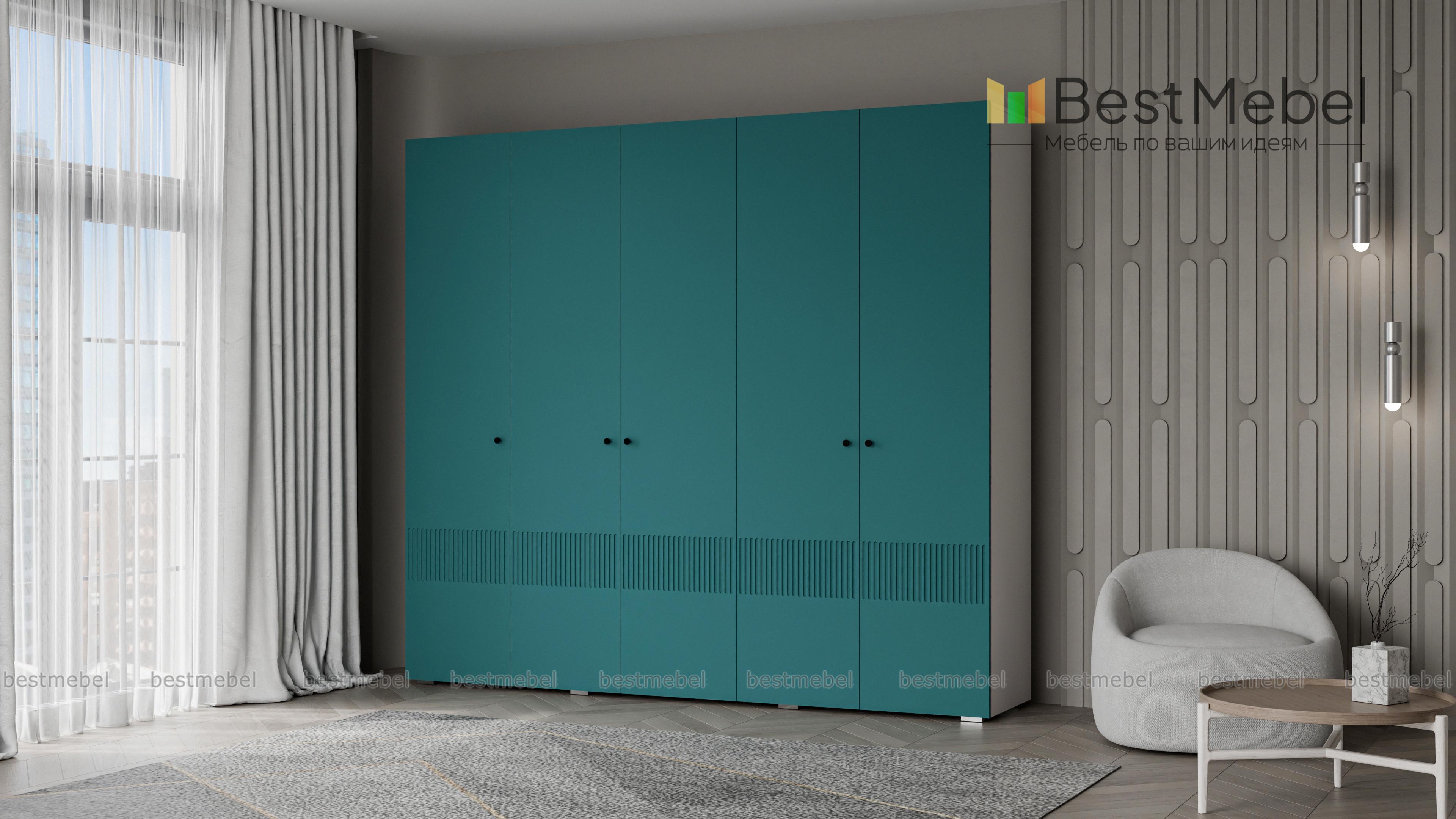 Шкаф распашной Джосс 5 BMS — это яркая современная модель с цветным фасадом и фрезеровкой. Комплектация с двумя штангами и полками подходит как для сложенной, так и развешанной на вешалках одежды, а также обуви и коробок с аксессуарами. С помощью этого пятидверного шкафа вы сможете удобно и эстетично организовать хранение гардероба для двух человек. Купить шкаф распашной Джосс 5 BMS с выбором размеров, цвета и фурнитуры приглашаем к нам в интернет-магазин.