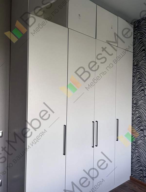Заказ 00000275042, шкаф распашной Остин Лайт 6 BMS (1700х2500х500). Это не первый мой шкаф с БестМебель. Классно, что можно придумать свое наполнение, очень удобно. В целом качество нормальное, кое-где есть микро сколы, но их видно только при ближайшем рассмотрении, но не при ежедневном использовании. Фурнитура приемлемая, только на верхних полках мы просили не устанавливать пуш-ту-опен механизм, иначе дверцы немного оттопыриваются. Но поскольку туда убраны редко используемые вещи, это не проблема. Так что могу рекомендовать, особенно если требуется какое-то нестандартное исполнение.