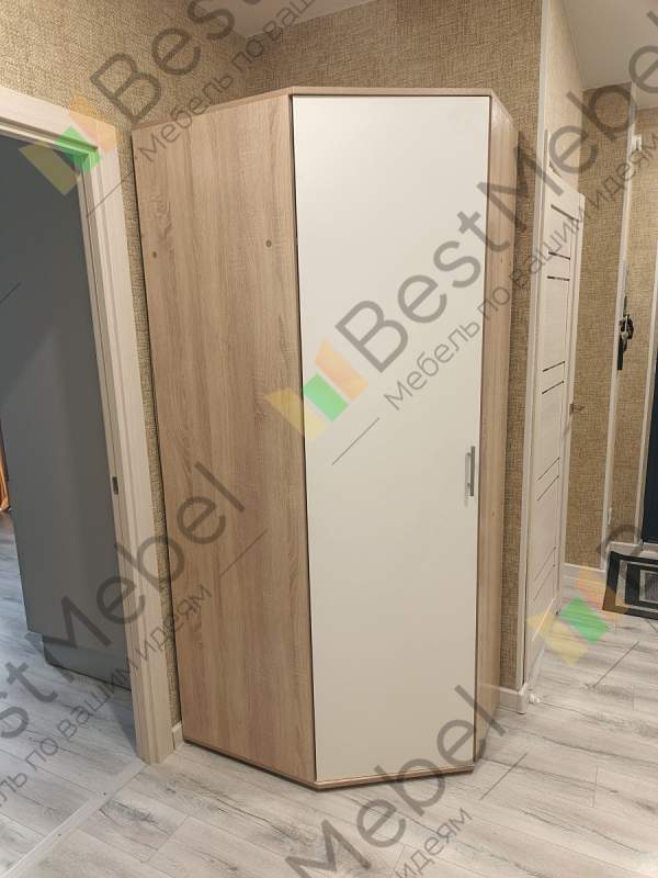 Угловой шкаф Дуэт 16.13 BMS прекрасно подходит для людей, которые ценят компактность наряду с вместительностью. Выполнен в современном стиле с интересной комбинацией цветов. Станет отличным дополнением к интерьеру Вашей комнаты. Прекрасно будет смотреться как в маленьком, так и в большом помещении. Внутреннее пространство укомплектовано вкладной штангой для одежды и антресольной полкой для различных вещей. Одна большая дверь открывает доступ сразу ко всем отделам модели, что увеличивает комфорт.