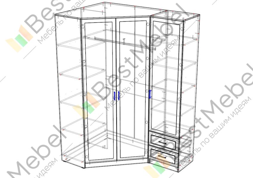 Шкаф большой, вместительный. Цвет и размер подобрали индивидуально, также как и зеркальное расположение отделений шкафа. Изготовили, доставили и собрали быстро и качественно.