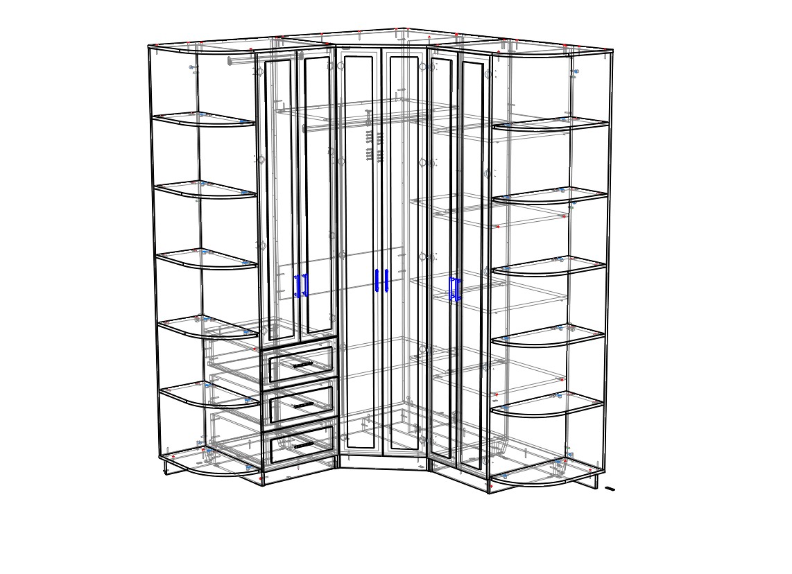 Шкаф угловой (правый): 865х2400х1013