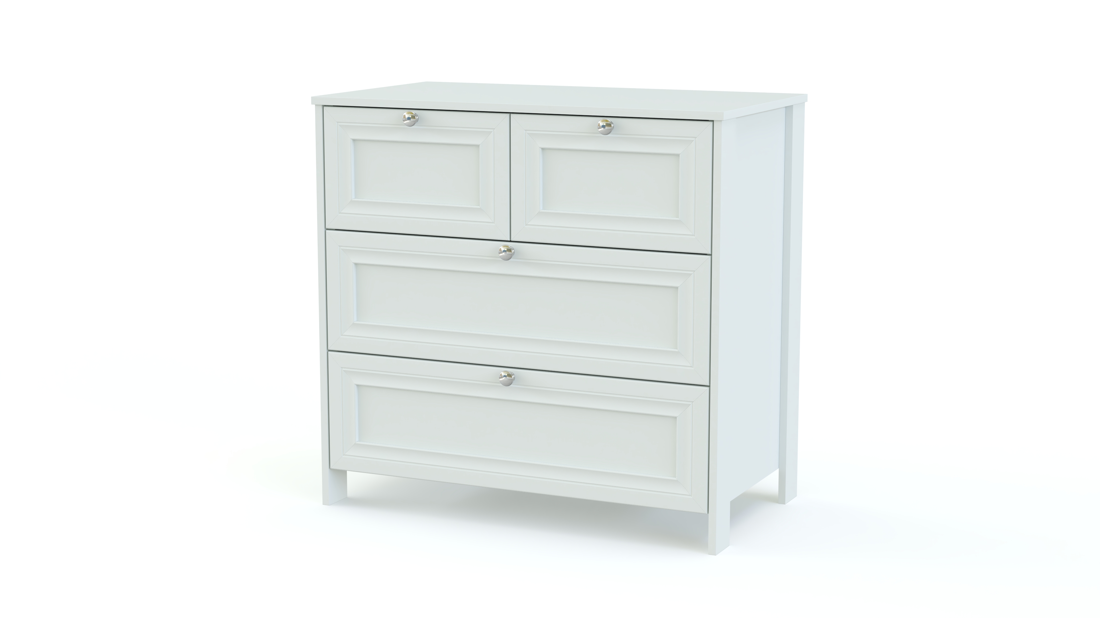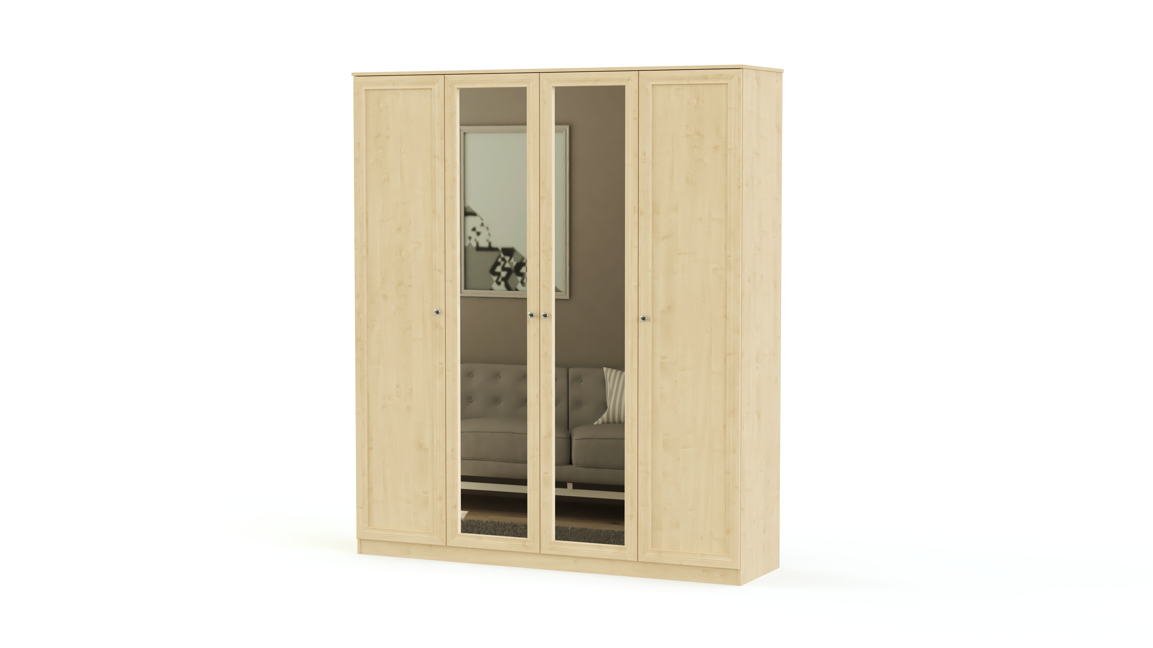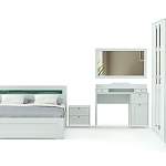 Элегантный классический комплект не выйдет из моды и прослужит вам долгие годы. Спальня Соната BMS состоит из нескольких модулей, которые удобно компоновать по своему вкусу. Это вместительный четырехдверный шкаф с зеркалами в полный рост, комод для белья и мелочей, туалетный столик с навесным зеркалом, кровать и прикроватные тумбы. Мебель выполнена в модных натуральных белых оттенках, а особенное изящество и легкость гарнитуру придают высокие ножки и металлическая фурнитура.