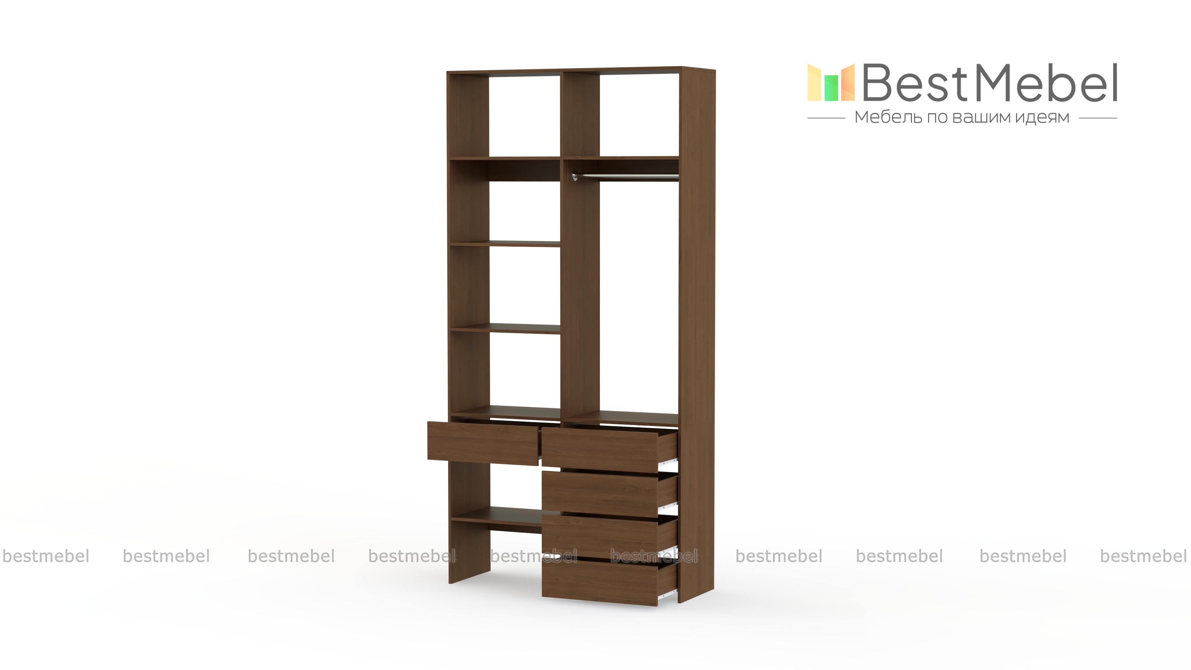 Стеллаж для одежды Мирта 1 BMS подходит для обустройства гардеробной, спальни или торгового зала. Изготовленная из высококачественной ламинированной плиты, конструкция обладает прочностью и долговечностью. Открытые полки дополнены штангой и пятью выдвижными ящиками, позволяя разместить одежду на вешалках и в сложенном виде, обувь и аксессуары. Купить стеллаж для одежды Мирта 1 BMS в необходимом размере и цвете вы сможете на сайте нашего интернет-магазина.