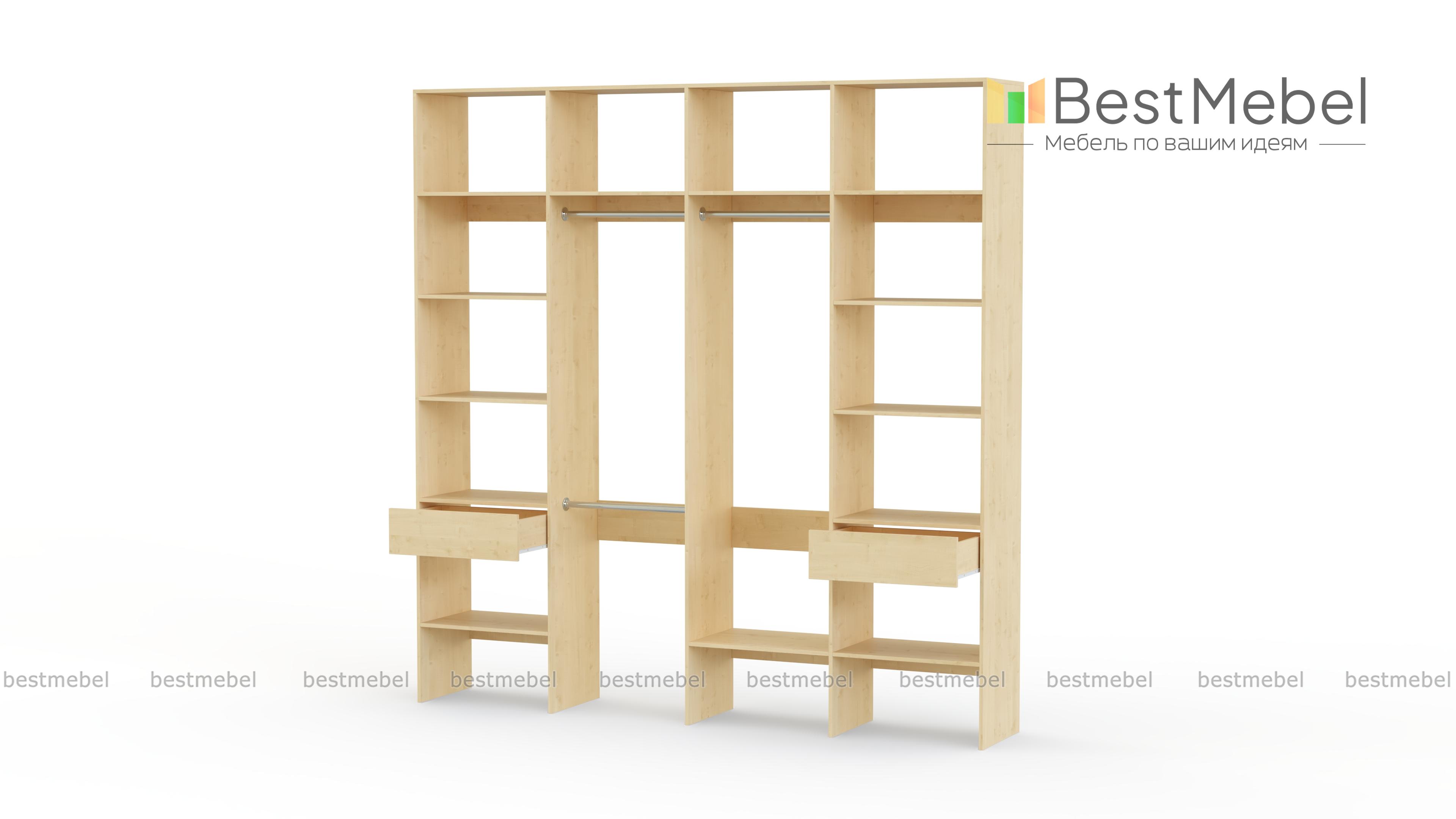 Стеллаж для одежды Мирта 20 BMS сделает хранение удобным, сэкономив время на поиски нужной вещи. Наличие большого количества полок позволяет компактно сложить одежду, поставить корзины и контейнеры, а для вешалок и мелких аксессуаров имеются штанги и выдвижные отделения. Открытый четырехсекционный стеллаж, изготовленный из ЛДСП, станет отличным выбором для гардеробной. Купить стеллаж для одежды Мирта 20 BMS вы сможете в нашем интернет-магазине, подобрав все необходимые параметры.