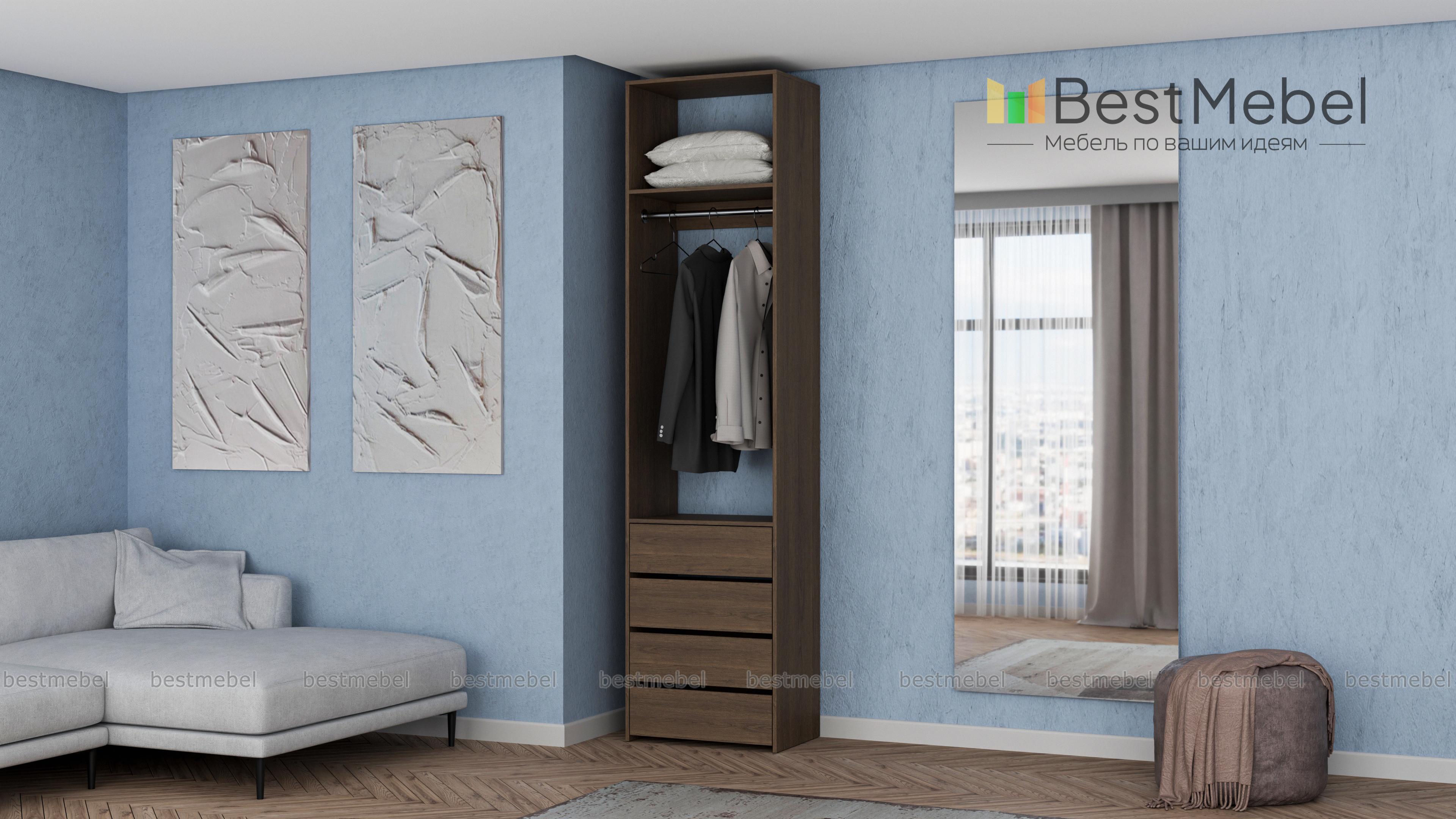 Стеллаж для одежды Мирта 32 BMS позволит вам эффективно использовать даже небольшое пространство. Для удобного доступа к одежде и обуви открытая конструкция оборудована металлической штангой, верхней полкой и четырьмя выдвижными ящиками. Лаконичный дизайн без декора и накладной фурнитуры легко сочетать с разными по стилю интерьерами. Купить стеллаж для одежды Мирта 32 BMS вы сможете на сайте нашего интернет-магазина в необходимом размере и оттенке.