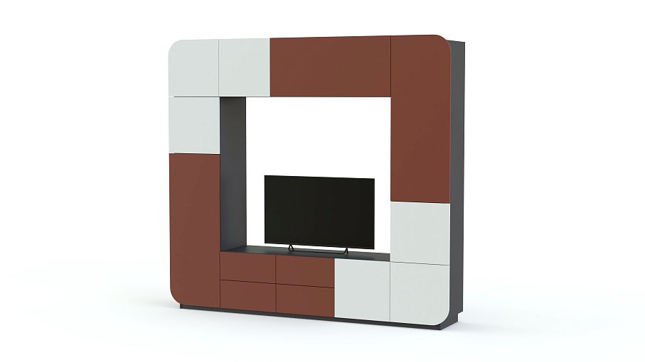 Яркая стенка Пенелопа-6 BMS, выполненная в стиле хай-тэк, принесет в вашу гостиную комфорт и позитивное настроение. Футуристичная конструкция представляет собой расположенные по периметру отдельные модули – вместительные закрытые отделения и выдвижные ящики. По центру располагается ниша для ТВ, который становится частью композиции. Фасады гостиной скруглены по краям и выполнены в контрастном оттенке. Дверцы оснащены эргономичным механизмом и открываются простым нажатием.