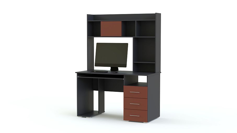 Яркий компьютерный стол МБ-11.1 BMS подойдет для учебы и работы за компьютером и отлично впишется в подростковые комнаты благодаря современному, запоминающемуся дизайну. Модель оборудована полкой для клавиатуры, отделением для системного блока и боковой тумбой с выдвижными ящиками. Надстройка гармонично сочетает открытые полки и небольшое закрытое отделение. Матовые дверцы насыщенных оттенков придают столу особенно эффектный вид и отличаются износостойкостью.