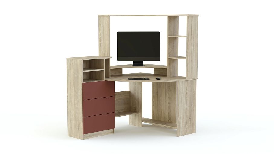 Стол компьютерный МБ-44.1 BMS отличается практичной угловой конструкцией и поможет оборудовать комфортное, эргономичное рабочее место. Современная модель в сочетании светлых древесных тонов и эффектного терракотового фасада оборудована закругленной столешницей, нижними полками для бумаг, системного блока и боковым отделением с выдвижными ящиками и открытыми полками. Надстройка с подставкой под монитор и открытыми полками разместит книги и предметы декора. Купить стол компьютерный МБ-44.1 BMS вы сможете по лучшей цене в нашем интернет-магазине.