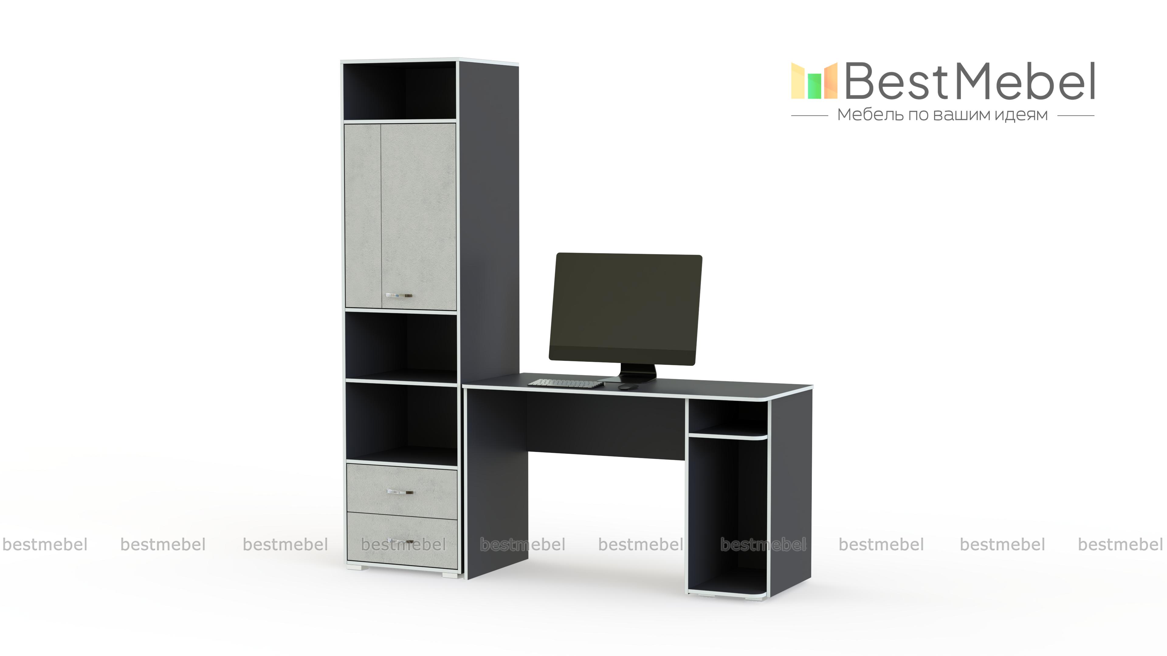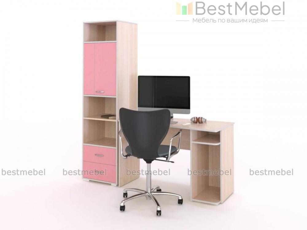 Стол Роза-09 BMS гармонично впишется в интерьер комнаты подростка и поможет оборудовать комфортную рабочую зону. Композиция включает в себя компьютерный столик с эргономичной столешницей и нишей под системный блок и комбинированный пенал с выдвижными ящиками, открытыми полками и распашным отделением. Предметы выполнены из экологичных, износостойких материалов в сочетании корпуса светлых древесных тонов и графитовых фасадов. Купить стол Роза-09 BMS приглашаем в наш интернет-магазин по приятной цене.