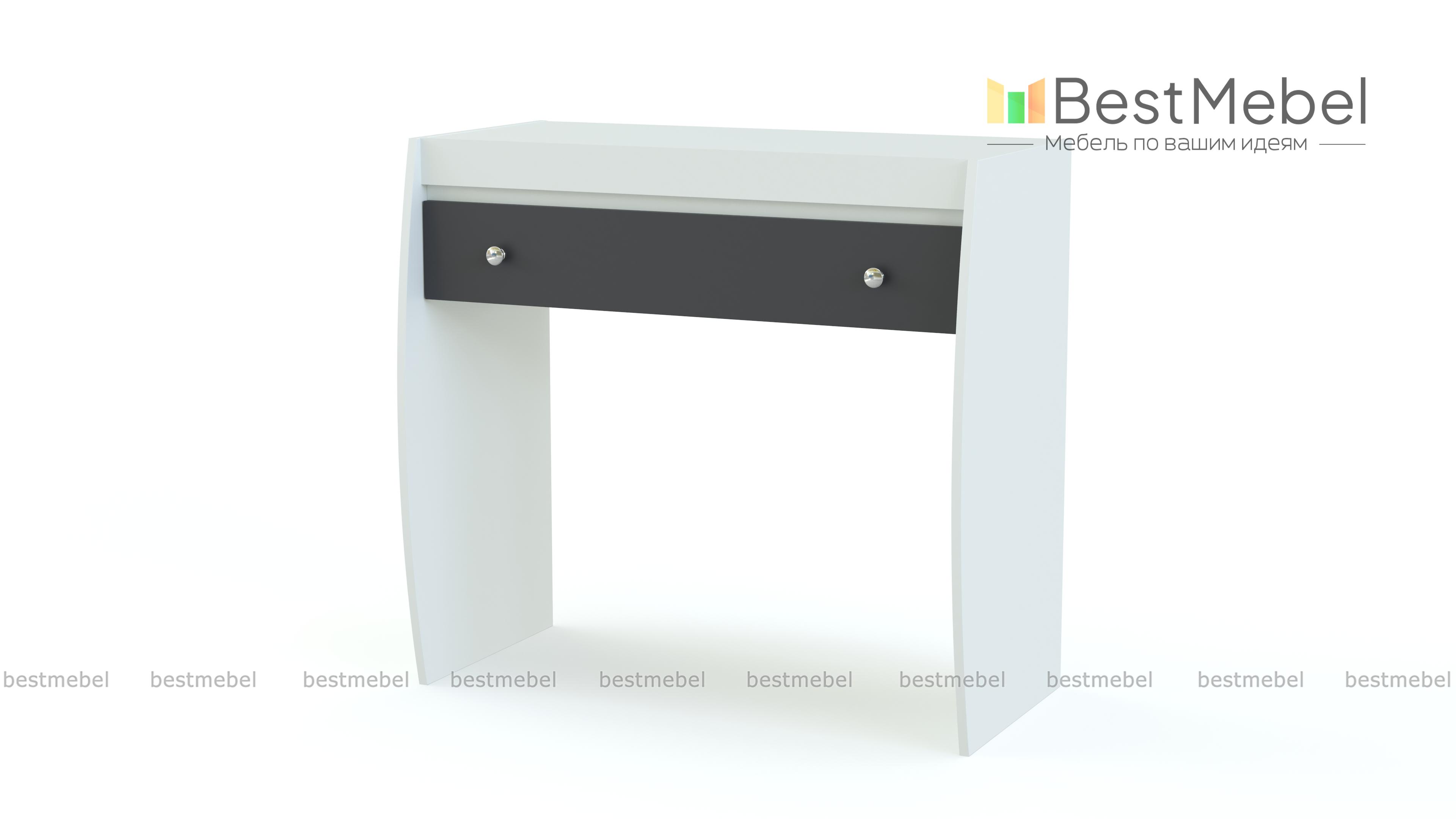 Туалетный стол Cseno BMS в стиле модернизм – это интересное решение для Вашей комнаты и непосредственно личного уголка по наведению красоты. Модель имеет большой и вместительный выдвижной ящик. Он в свою очередь оборудован оригинальными ручками. Боковые панели изделия имеют изогнутый вид. Купить необычный туалетный стол Cseno BMS можно на нашем сайте по приятным ценам.