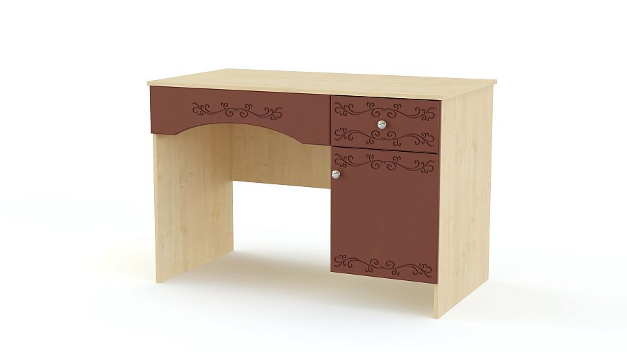 Туалетный стол Кэрри 4 BMS гармонично дополнит спальные гарнитуры в классическом стиле. Элегантная модель выполнена в насыщенных терракотовых тонах и декорирована по фасаду фрезерованным рисунком. Столик оборудован просторной прямоугольной столешницей, на которой достаточно места для зеркала и мелочей, и тумбой с выдвижным ящиком и распашным отделением для уходовых средств и аксессуаров. Купить туалетный стол Кэрри 4 BMS по выгодной цене приглашаем к нам в интернет-магазин.