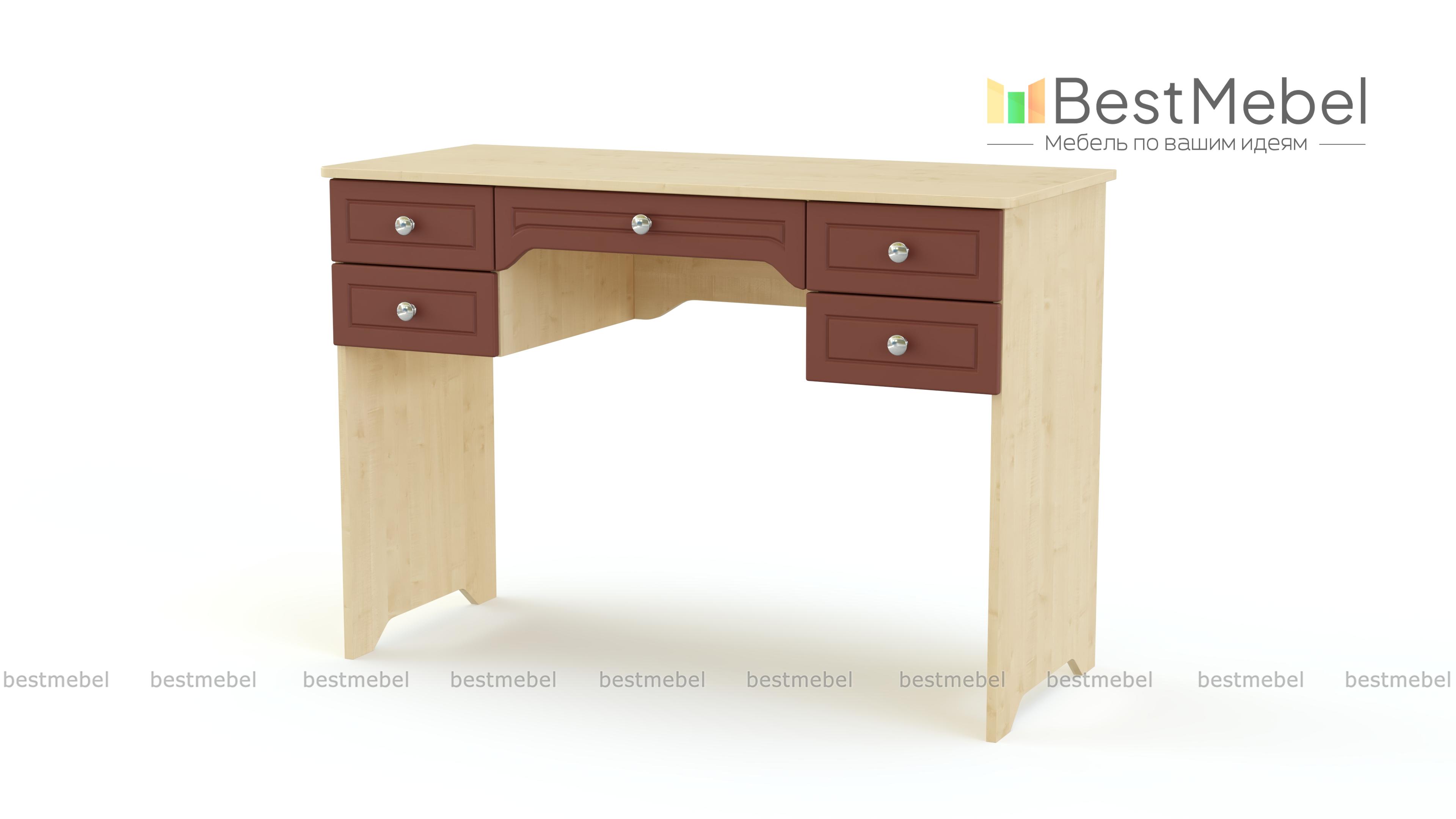 Туалетный столик Софья 2 BMS гармонично сочетает классические и современные черты. Выполненная в графитовых тонах, модель декорирована по фасаду рамочной фрезеровкой. Один большой и четыре малых выдвижных ящика помогут систематизировать хранение средств по уходу, аксессуаров, украшений и прочих мелочей. На широкой столешнице достаточно места для зеркала и предметов декора. Купить туалетный столик Софья 2 BMS для уютного спального интерьера приглашаем в наш интернет-магазин.