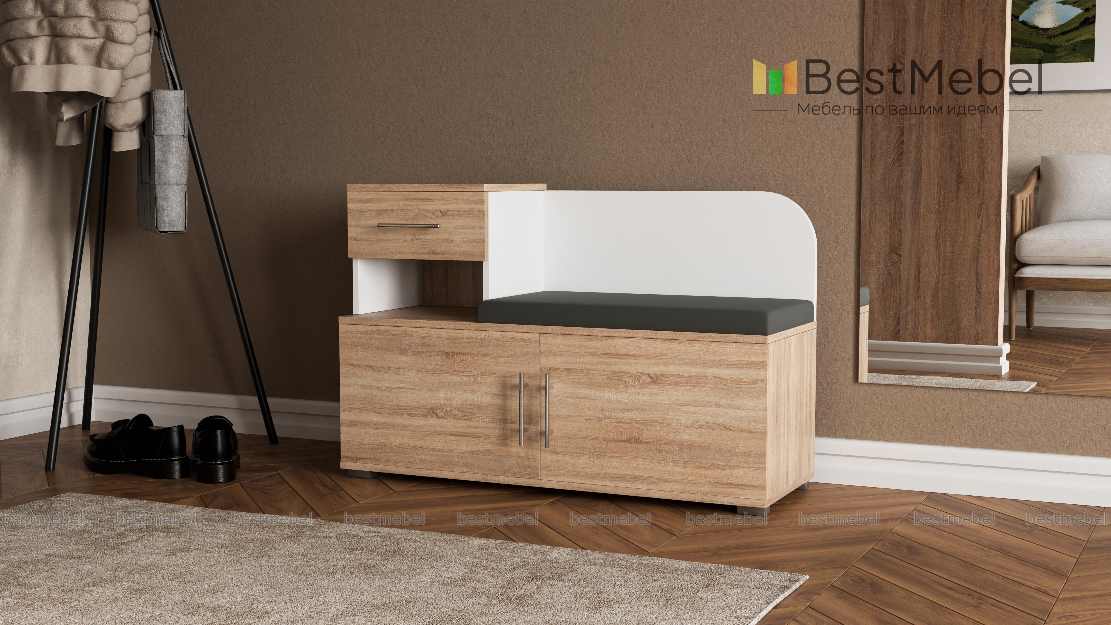 Тумба Аврора BMS – практичное дополнение меблировки прихожей. Компактная и функциональная, тумба оборудована просторным распашным отделением с полками, нишей, выдвижным ящиком и удобна для хранения сезонной обуви, средств по уходу и аксессуаров. Комфортным процесс надевания обуви сделает сиденье в мягкой тканевой обивке и высокая скругленная спинка. Износостойкие поверхности надолго сохранят эстетичный вид и не требовательны в уходе. Купить тумбу Аврора BMS приглашаем недорого в наш интернет-магазин.