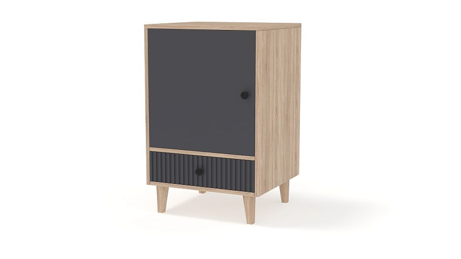 Тумба прикроватная Брукс 3 BMS создаст уютное пространство в вашей спальне или детской. Древесная отделка корпуса в сочетании с темным рельефным фасадом придает изделию современный выразительный вид. Так необходимые мелочи можно хранить на полке за глухой распашной дверцей или положить в выдвижной ящик, а столешницу дополнить светильником. Купить тумбу прикроватную Брукс 3 BMS с возможностью выбора цвета и размеров приглашаем к нам в интернет-магазин.