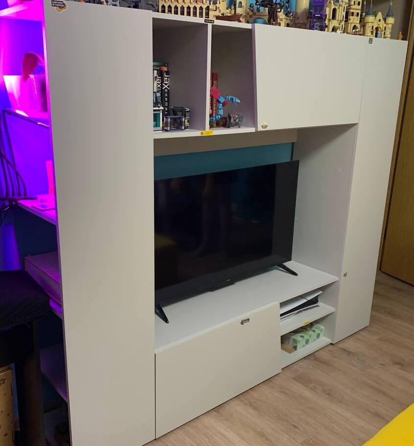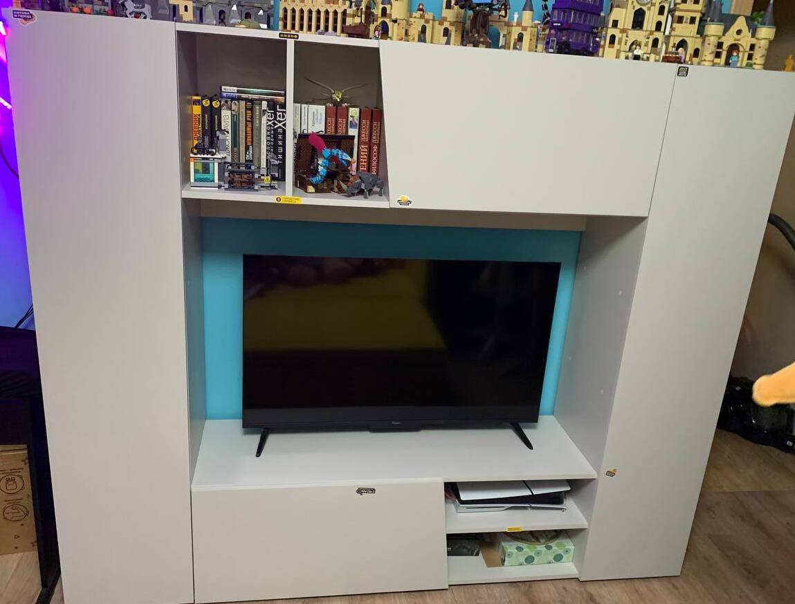 Заказ 00000128586Стенка не смотрится громоздко, но при этом в ней много мест для хранения. Собирается легко.
