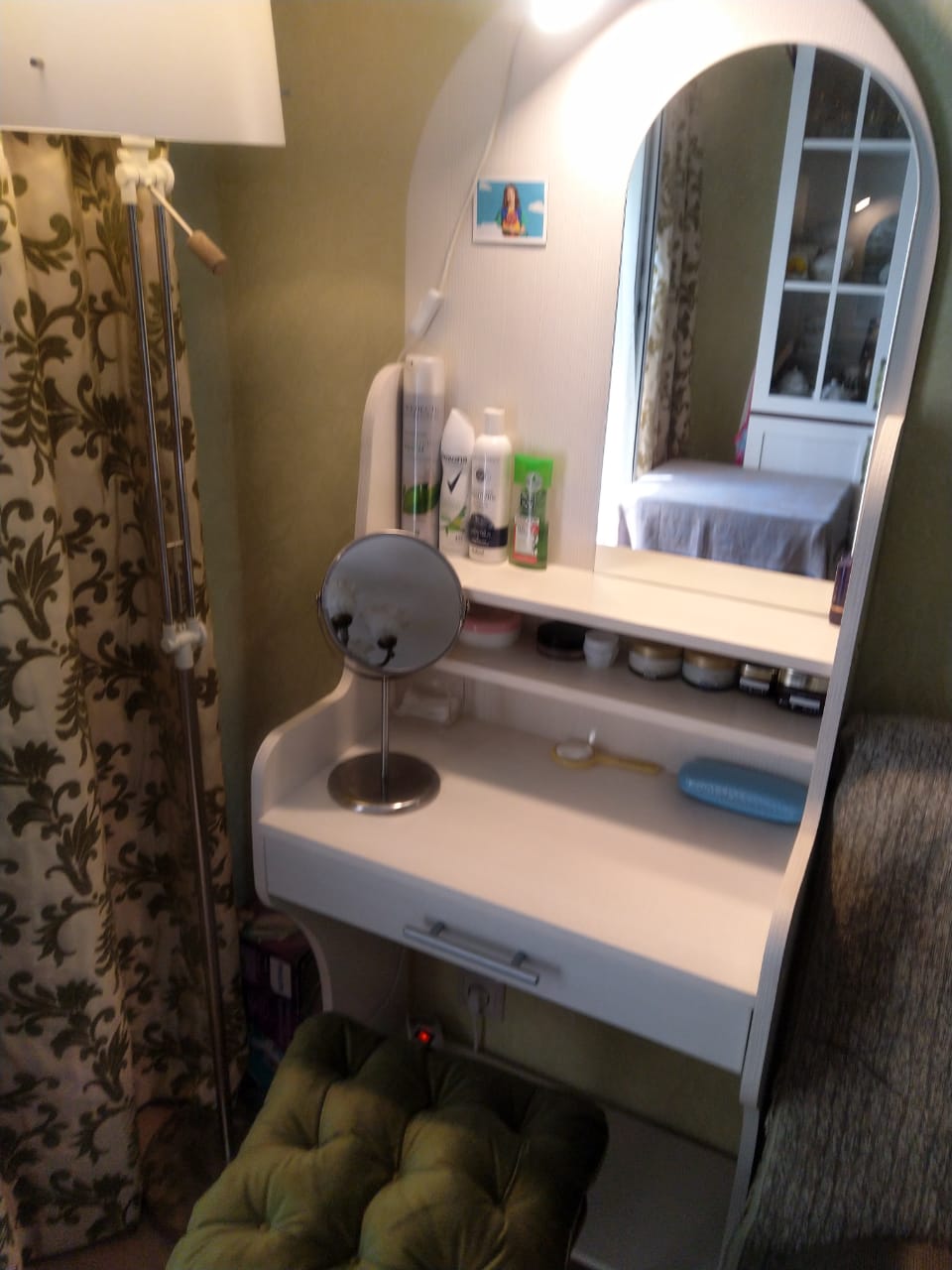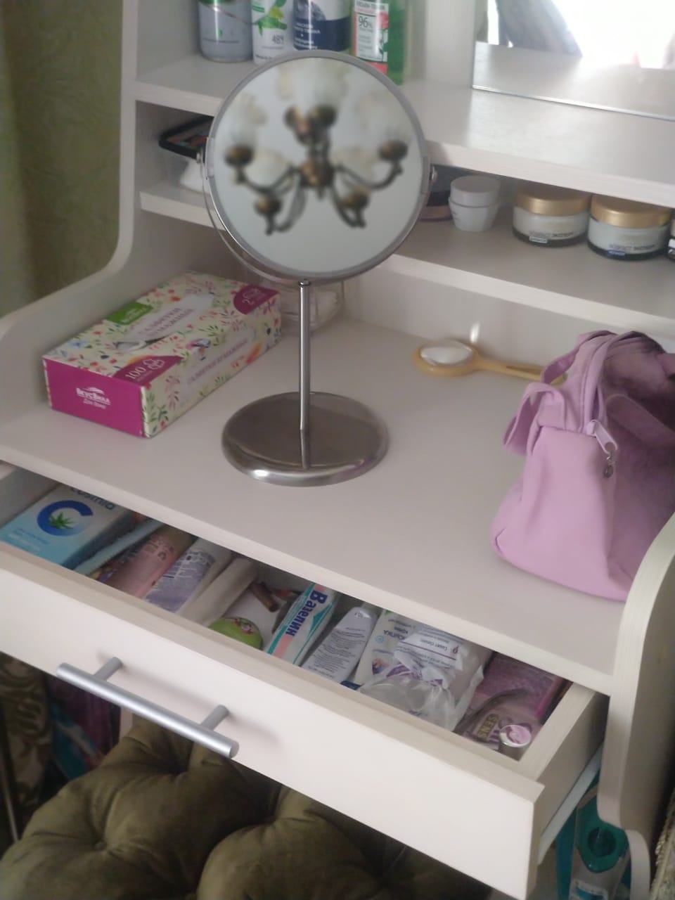 Столик удобный, компактный. Хороший выбор по цветам, основная мебель оригинального оттенка, не белая и здесь удалось подобрать точный цвет. Покупкой довольны.