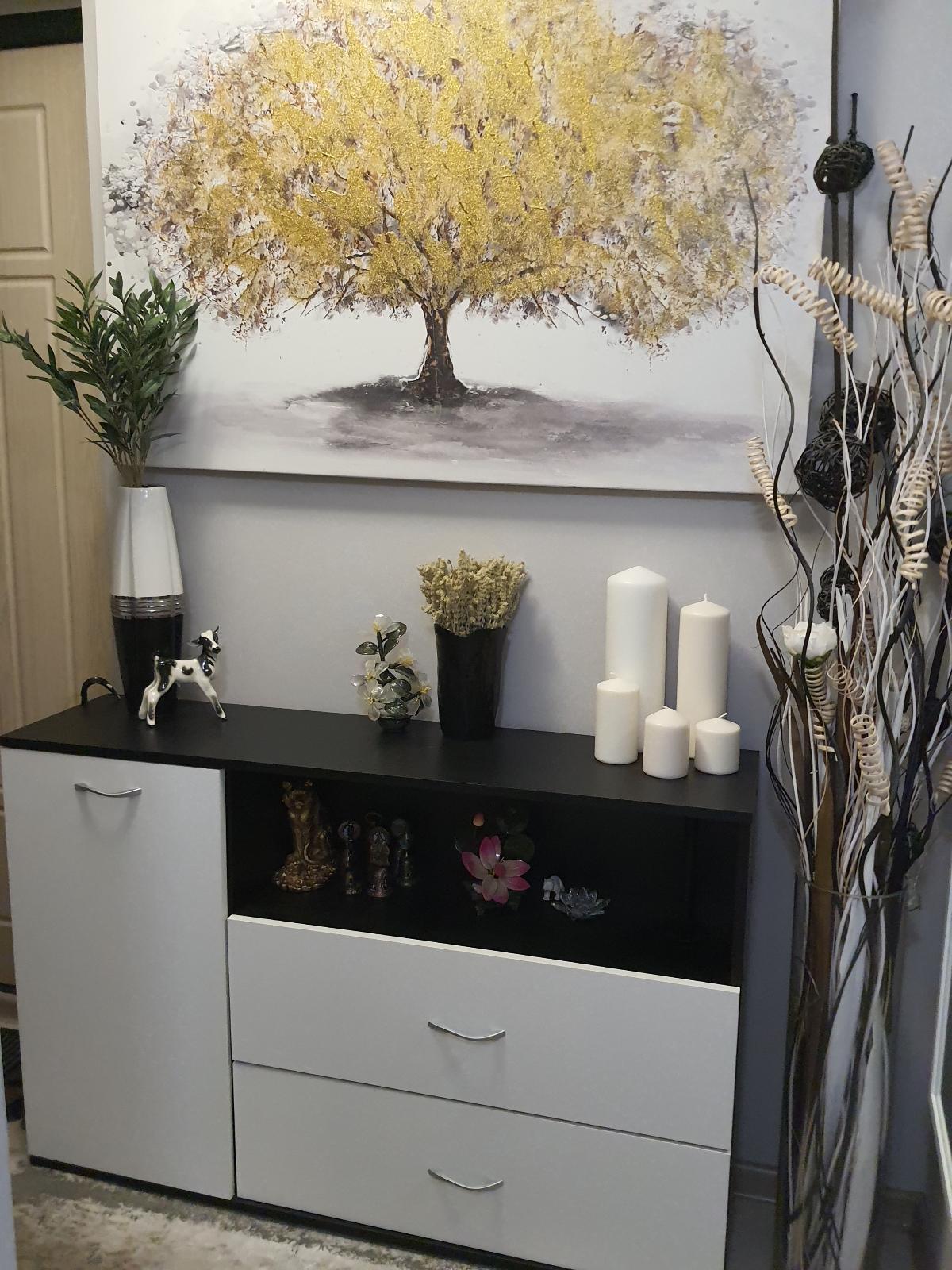 Купила в узкий коридор. Переживала, что займет много места, благо можно выбрать любой цвет и размер!- это очень важно для малогабаритных квартир! Выбрала белый фасад в сочетании с черным, зрительно совсем не забирает пространство! Ящики глубокие, много чего можно туда разместить. Комод функциональный!