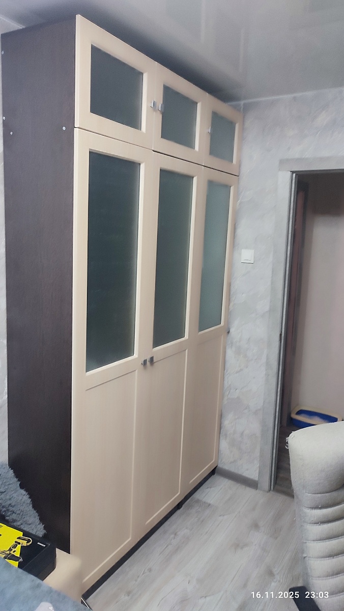 Нужен был шкаф с определенными нестандартными размерами ещё и зеркало на боковину шкафа, не могли долго найти, то размеры такие не делают, то зеркало не будет того размера, что нужно, заказали в bestmebelshop.ru, все пришло в точности как и ожидали, от заказа до сборки все понравилось, сделали быстро, вся фурнитура на месте, понятная схема сборки, цена-качество на высоте, учли все пожелания и размеры, что для нас было очень важно, прислали эскиз для согласования, легко было уточнять все детали, не было такого, что сделала заказ и продавец пропал! Теперь рекомендую всем знакомымЗаказ 00000345040Шкаф распашной Айва 13 BMS (2500х2650х600)
