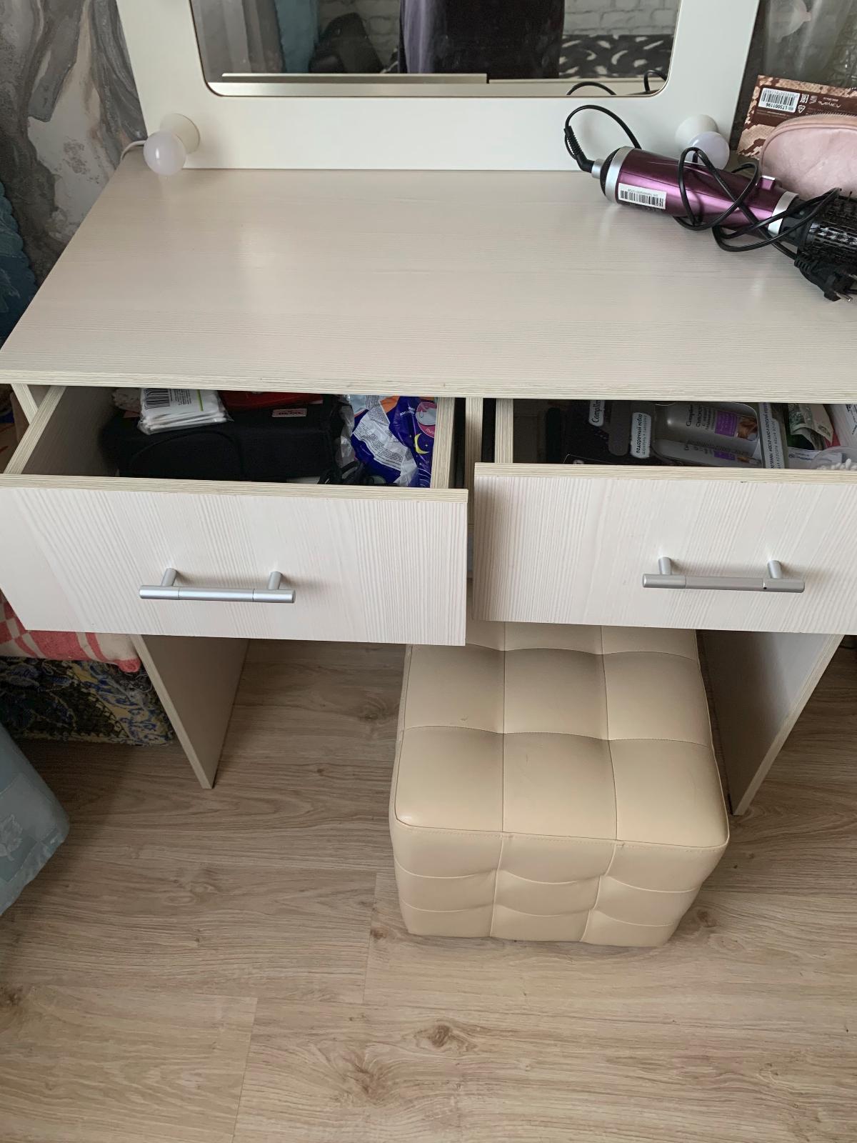 Стол очень удобный. Используем для компьютера думали будет чуть меньше но это не страшно цвет выбрали дуб молочный. Комплектация пришла полная