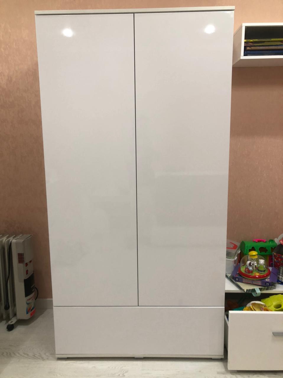 По дизайну и внешнему виду он оказался, то что мы искали. Идеально вписался в наш интерьер и к гарнитуру, даже ножки оказались одинаковые. Изготовили его реально за супер короткий срок и даже на день раньше привезли.Есть нюансы по доставке, дома обнаружили на фасаде двери с внутренний стороны скол в углу, где петля, установили, надеюсь внимание не будем обращать.Огромный минус, что компания не предоставляет инструкцию по сборке изделия, а только схему со спецификацией. Что за чем следует при сборке нужно догадываться самим! Из-за этого время сборки затянулось и пару раз приходилось переделывать! В отделе гарантий ответили, что у них такое не предусмотрено и вообще это индивидуальный заказ, но мы же выбирали по вашим шаблоном, как она может быть индивидуальным?! Рекомендуем Вам хотя бы разработать основную инструкцию к изделием и к ней при необходимости дополнительные схемы по сборке, с учетом  выбранных заказчиком дополнений.Так же огромный минус, что весь крепеж был сложен в один пакет! Почему нельзя нормально разложить по маленьким пакетикам? Приходилось шурупы раскладывать с разницей в длине по 1.5 мм в разные кучки, времени на это тоже ушло прилично.В целом за шкаф смелая 4.
