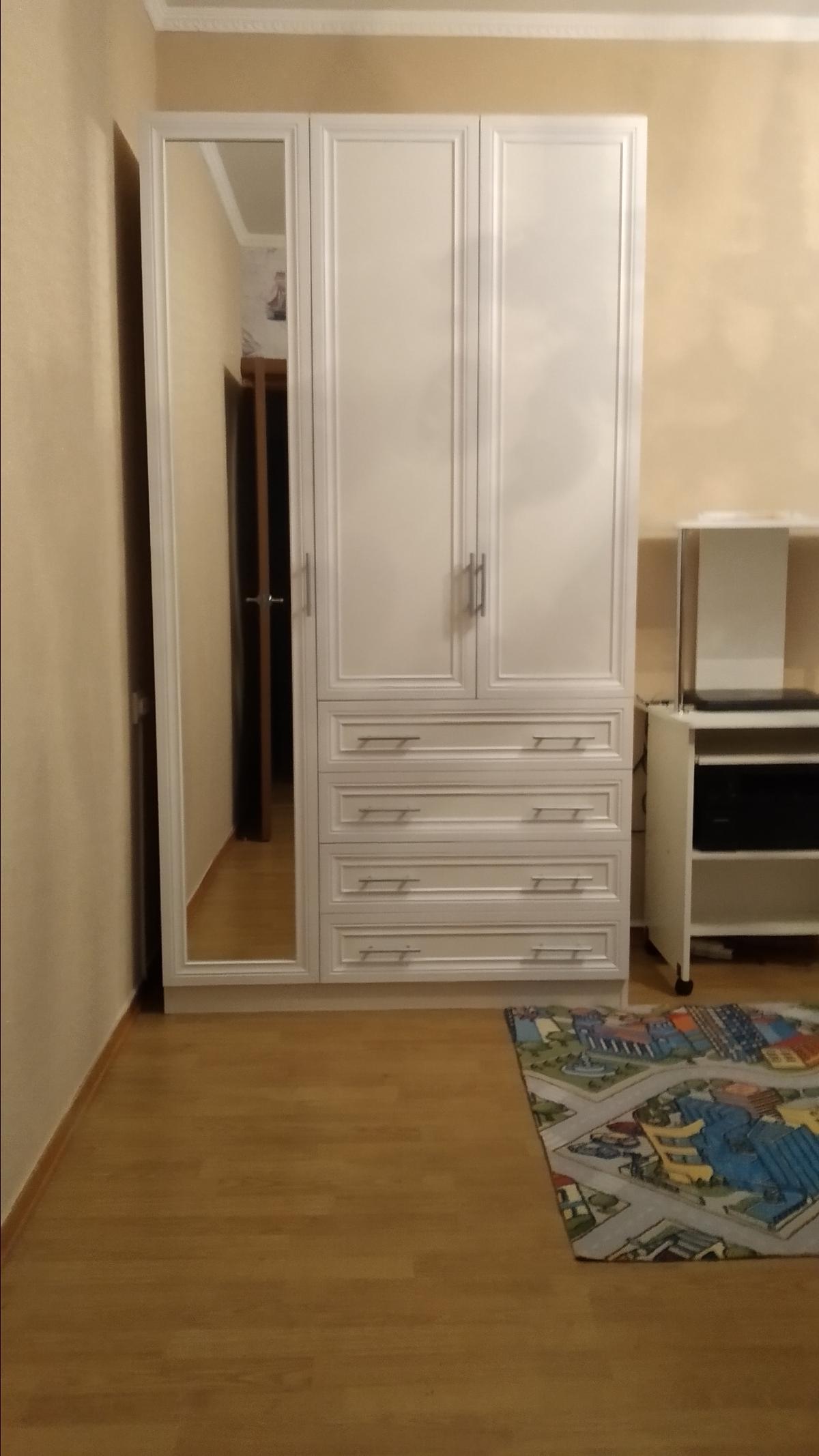Заказывала шкаф на лоджию, благо размеры позволяют. Никогда бы не подумала,что на балконе может оказаться шкаф с зеркалом. За счет цвета (дуб молочный) он смотрится очень легким, несмотря на высоту 2200. Единственное, что я поменяла, так это правую дверцу со штангой заменила на полки. Одна штанга в углу так и осталась, зато у меня теперь столько полок!!! Интересно, что, когда я интересовалась шкафами на заказ в других компаниях, мне озвучивали сумму не меньше 40 тыс руб. Здесь же все размеры подошли, кстати, заказываю не первый раз, и отмечаю, что очень удобно с разноообразием заводских размеров. Вообщем, размеры подошли, и правую часть я видоизменила. В итоге шкаф стоил 21 тыс руб. Комплектующих хватило, брака не было нигде, упаковано было аккуратно. Появилась еще одна комната со шкафом в моей квартире! Благодарю и сотрудников, которые постоянно были со мной на связи и службу доставки за своевременность и точность!
